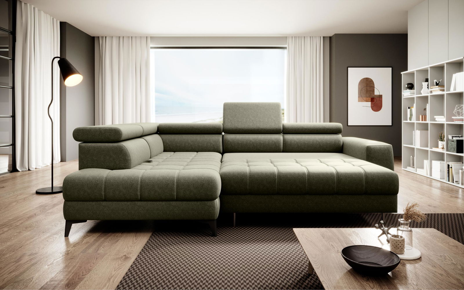 Γωνιακός καναπές Arono μοντέρνου στυλ με μίνιμαλ και καθαρές γραμμές στον σχεδιασμό του. Τα μαξιλάρια της πλάτης είναι μεγάλα και σταθερά προσφέροντας στήριξη και χάρη στα ρυθμιζόμενα προσκέφαλα χαρίζει άνεση και λειτουργικότητα ολες τις ώρες. Τον μίνιμαλ σχεδιασμό συμπληρώνουν τα κομψά πόδια της βάσης. Η εύκολη μετατροπή του σε κρεβάτι καθώς και ο αποθηκευτικός χώρος που υπάρχει κάτω από το ανάκλιντρο καθιστούν το γωνιακό καναπέ Arono ιδανική επιλογή ακόμα και για μικρότερους χώρους.