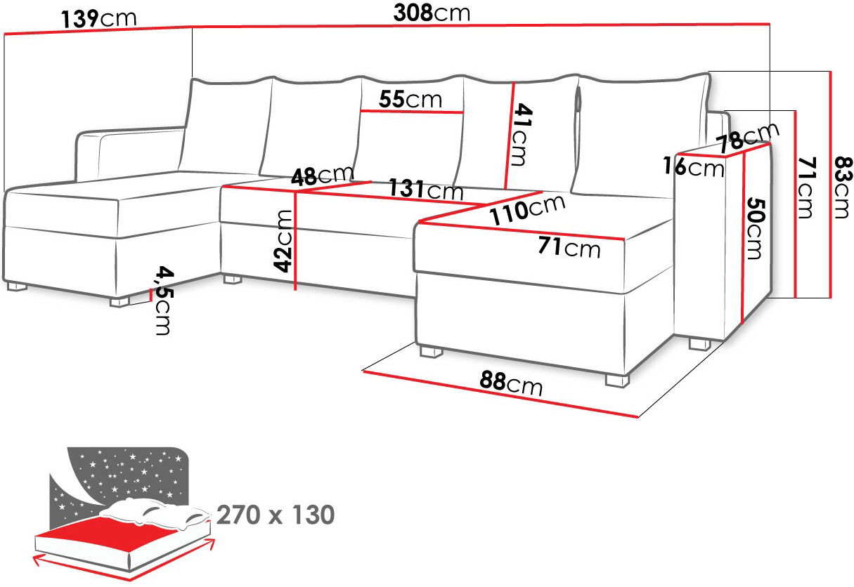 Γωνιακός καναπές Astana U, μια κατάλληλη επιλογή που θα προσφέρει την πλήρης άνεση και ξεκούραση χάρη στην δυνατότητα μετατροπής σε κρεβάτι. Ο κομψός σχεδιασμός του σε συνδυασμό με την διχρωμία των γήινων χρωμάτων τον κάνει ταιριαστό σε κάθε εσωτερική διακόσμηση και ταυτόχρονα πρακτικό καναπέ που διαθέτει ευρύχωρο αποθηκευτικό χώρο.