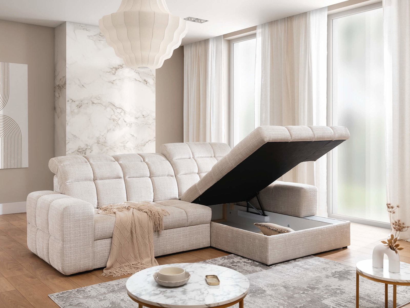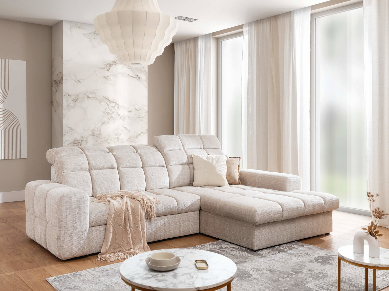 Γωνιακός Καναπές Avara-Μπεζ Ανοιχτό-Δεξιά