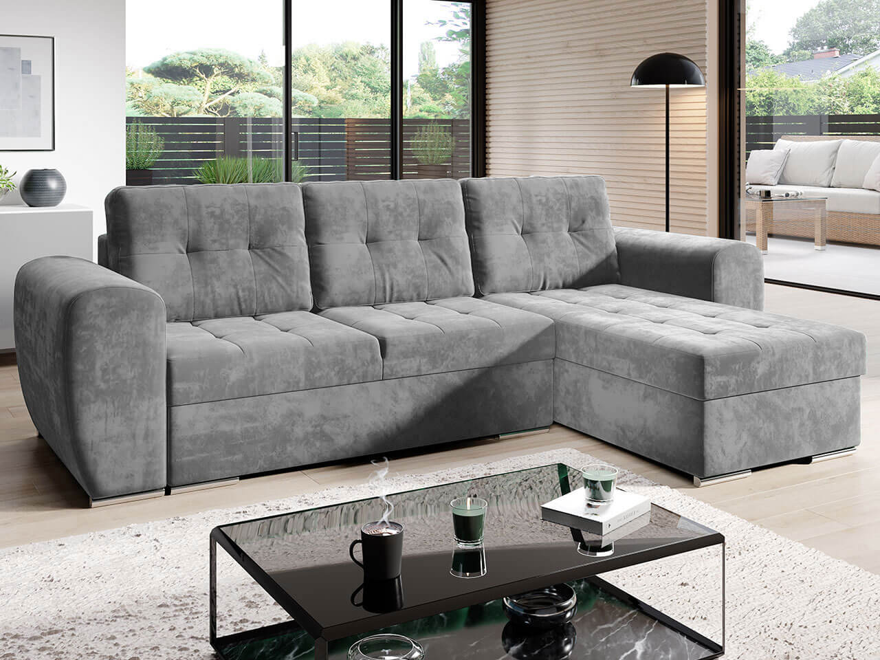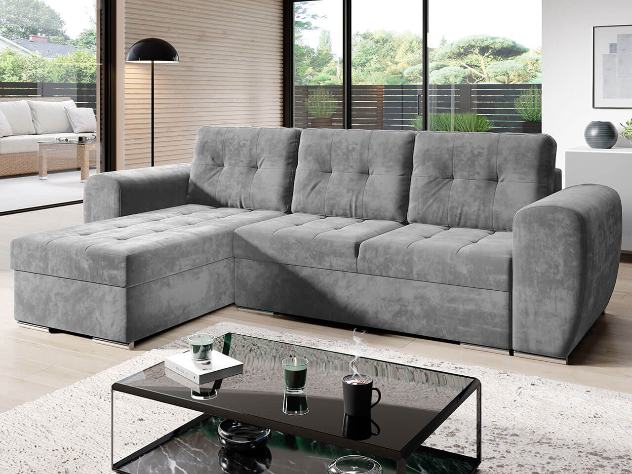 Γωνιακός καναπές Bari, μοντέρνου σχεδιασμού με λειτουργικότητα κρεβατιού, αποτελεί την πλέον ιδανική λύση για κάθε σαλόνι. Με δυνατότητα προσαρμοσμένης γωνίας.