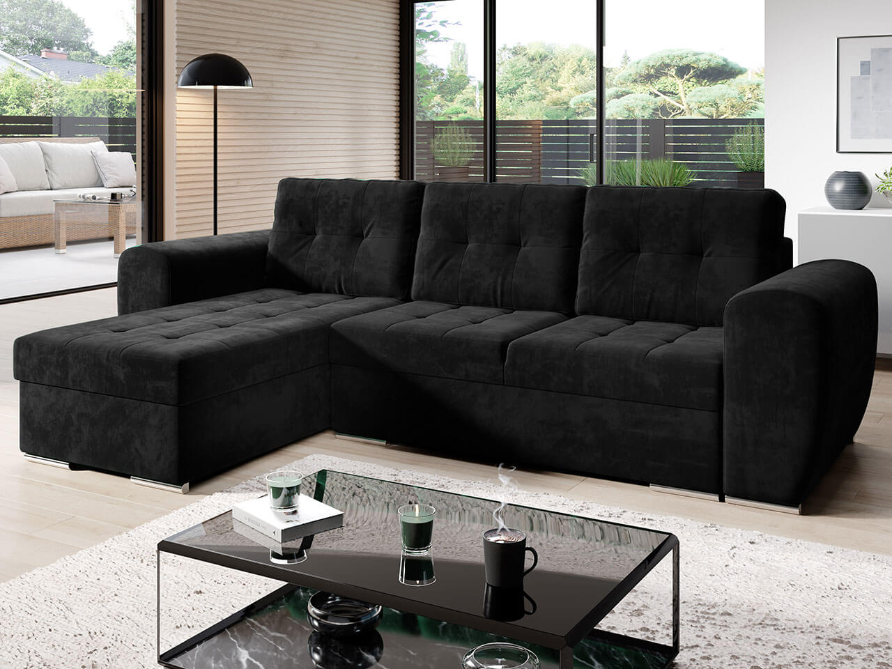 Γωνιακός καναπές Bari, μοντέρνου σχεδιασμού με λειτουργικότητα κρεβατιού, αποτελεί την πλέον ιδανική λύση για κάθε σαλόνι. Με δυνατότητα προσαρμοσμένης γωνίας.