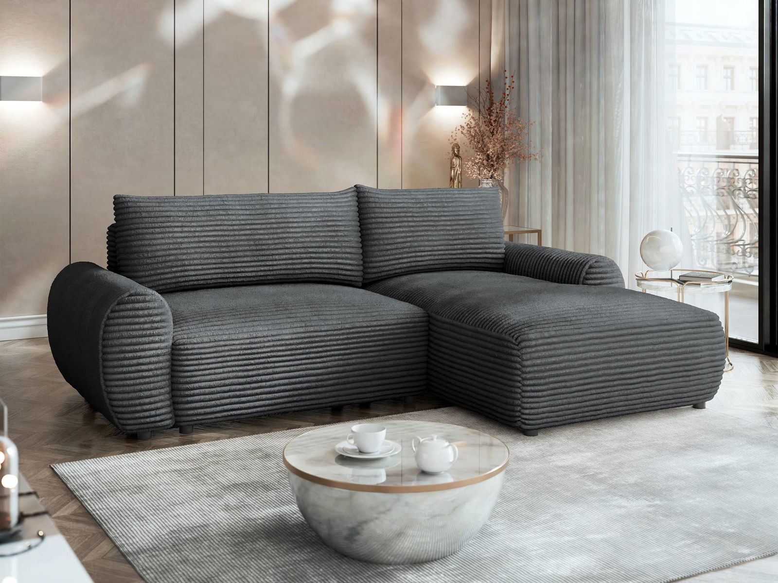 Ο γωνιακός καναπές Bello με λειτουργία ύπνου έχει μοναδικό σχεδιασμό, με απλή αλλά αισθησιακή μορφή, θα προσελκύσει την προσοχή όλων όσων εκτιμούν τον μινιμαλισμό και τις κομψές λύσεις. Το μοντέρνο κοτλέ ύφασμα επένδυσης θα σας τυλίξει με άνεση και απαλότητα.