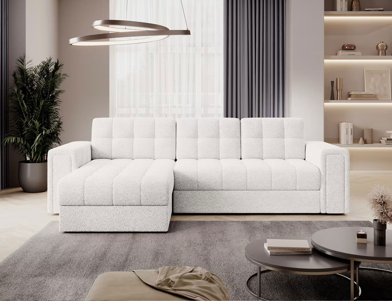 Ο γωνιακός καναπές Blenvi είναι ένα μοντέρνο και ευέλικτο έπιπλο, ιδανικό για ένα σαλόνι. Περιλαμβάνει μια θήκη αποθήκευσης για κλινοσκεπάσματα και μετατρέπεται εύκολα σε ένα άνετο κρεβάτι, παρέχοντας επιπλέον λειτουργικότητα. Η πλήρως επικαλυμμένη πλάτη επιτρέπει την τοποθέτηση σε οποιοδήποτε σημείο του δωματίου. Ο κομψός, μοντέρνος σχεδιασμός του το καθιστά ιδανικό για διάφορα στυλ εσωτερικών χώρων.