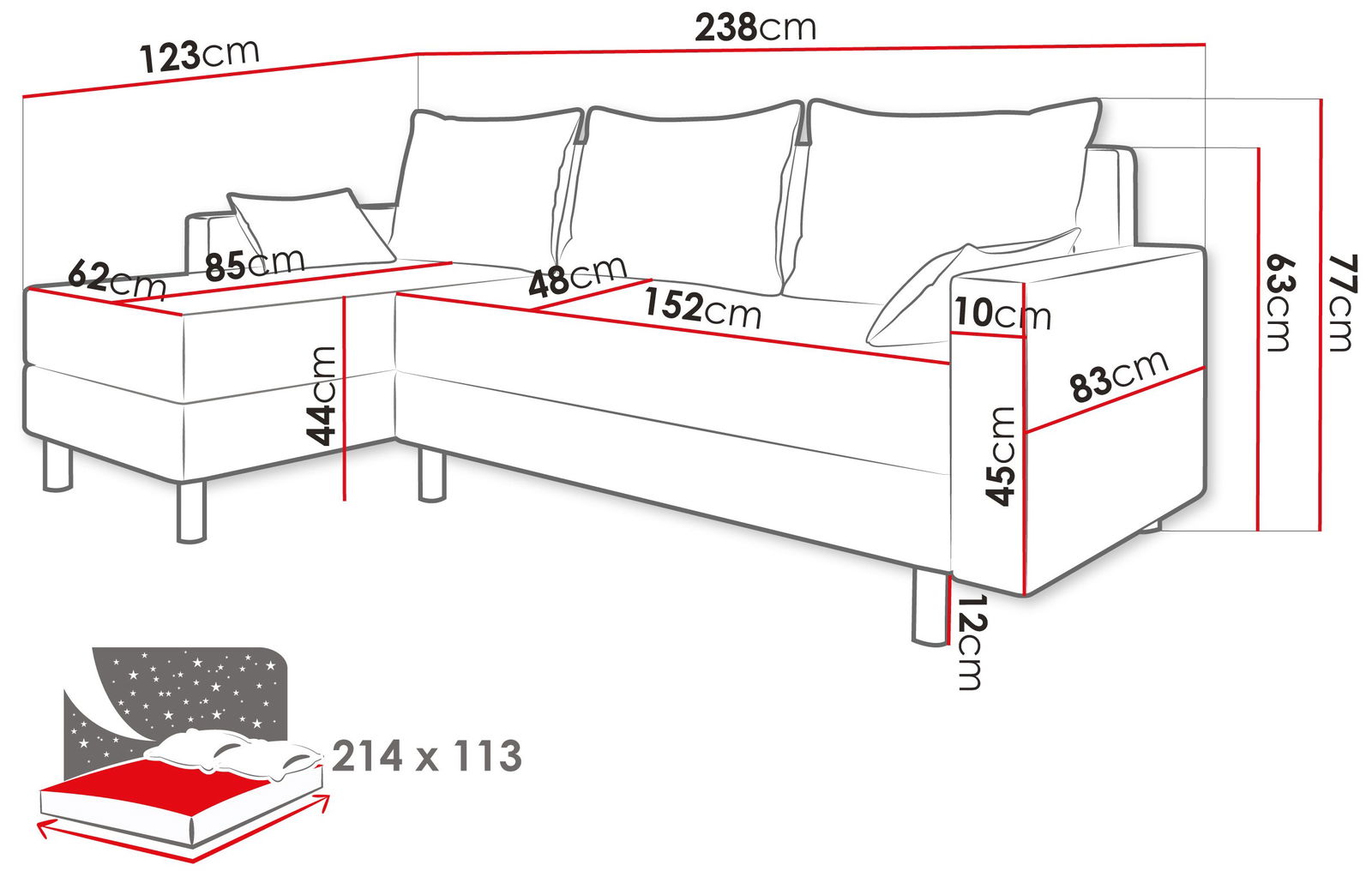 – Περιλαμβάνονται μαξιλάρια, χωρίς φερμουάρ