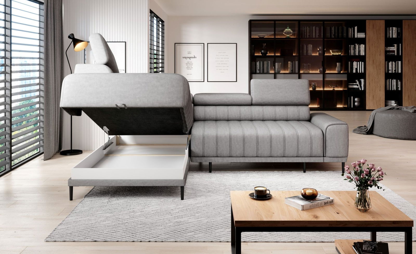 Γωνιακός καναπές Caladon L μίνιμαλ σχεδιασμού με λειτουργίες που αυξάνουν την χρηστική του αξία. Ιδανική επιλογή για τον χώρο σας καθώς οι βολικές του διαστάσεις θα χαρίσουν στιγμές χαλάρωσης σε εσας και τους φίλους σας.