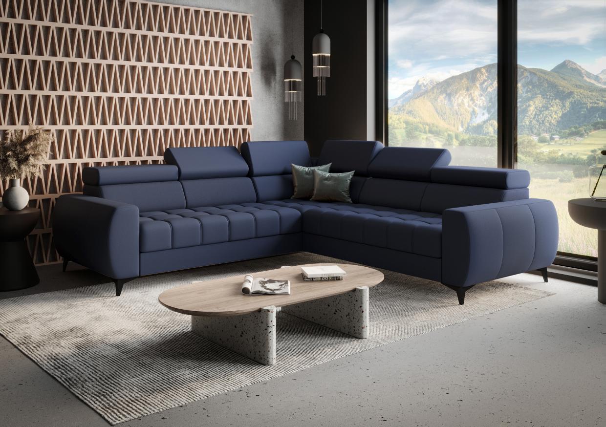 Γωνιακός καναπές Calyra Max Lthr-Μπλε Σκούρο-Δεξιά
