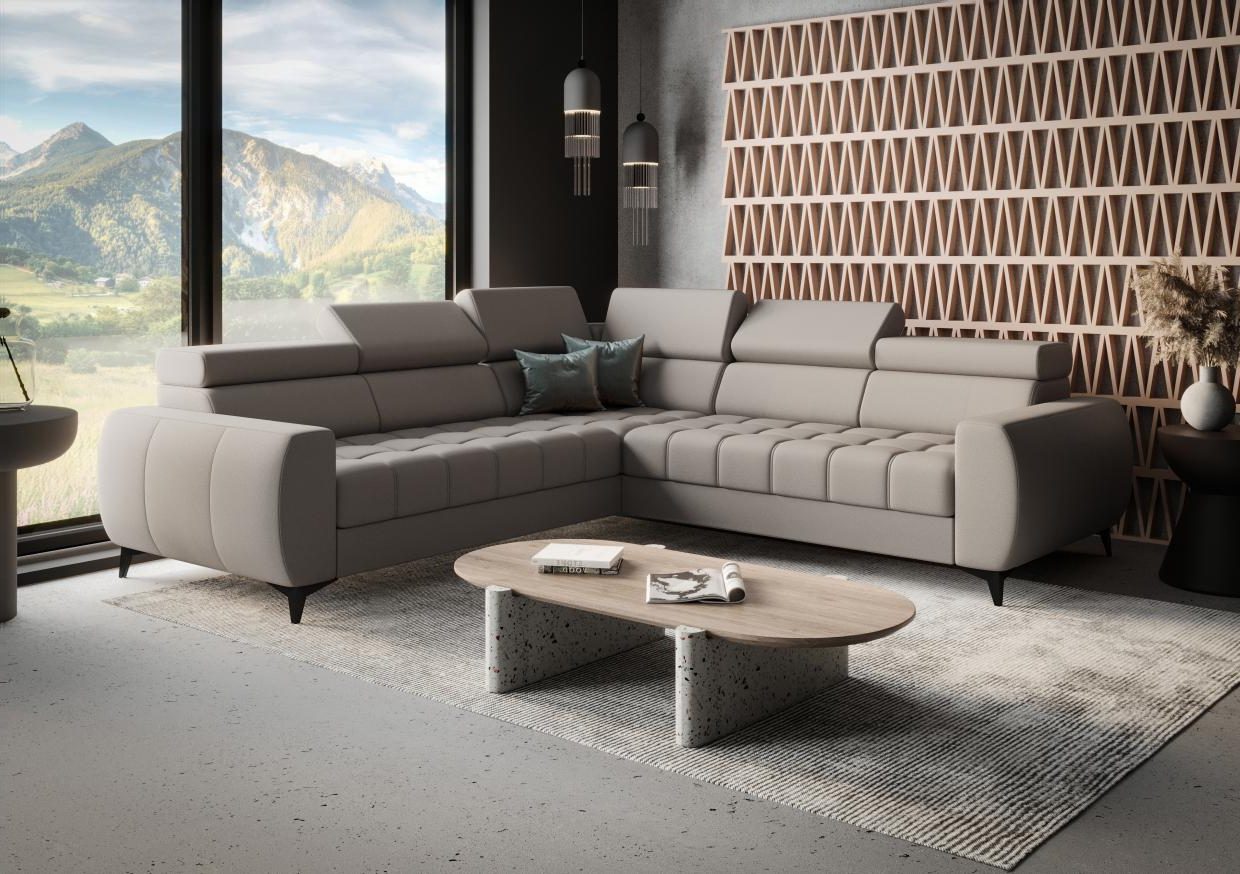 Γωνιακός καναπές Calyra Max Lthr-Γκρι-Αριστερή
