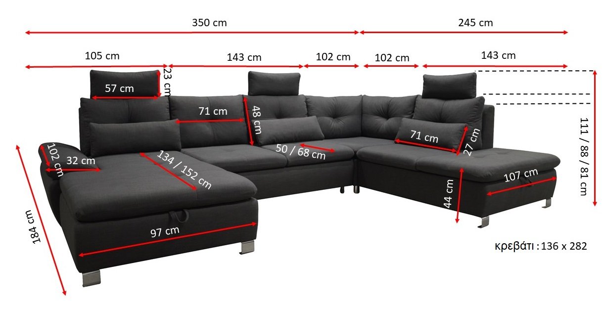 Ιδανικό και για μεγάλους χώρους, το σαλόνι γωνία Canaria plus, εντυπωσιάζει με το μοντέρνο και εργονομικό σχεδιασμό του. Οι ρυθμίσεις σε προσκέφαλα και μπράτσα, καθώς και τα βοηθητικά μαξιλάρια πλάτης, συμβάλουν στο πιο αναπαυτικό κάθισμα.