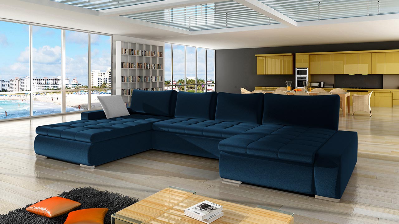 Γωνιακός καναπές Caro, με μοντέρνο και επιβλητικό σχεδιασμό, ιδανικό για την επιπλωση του καθιστικού σας.