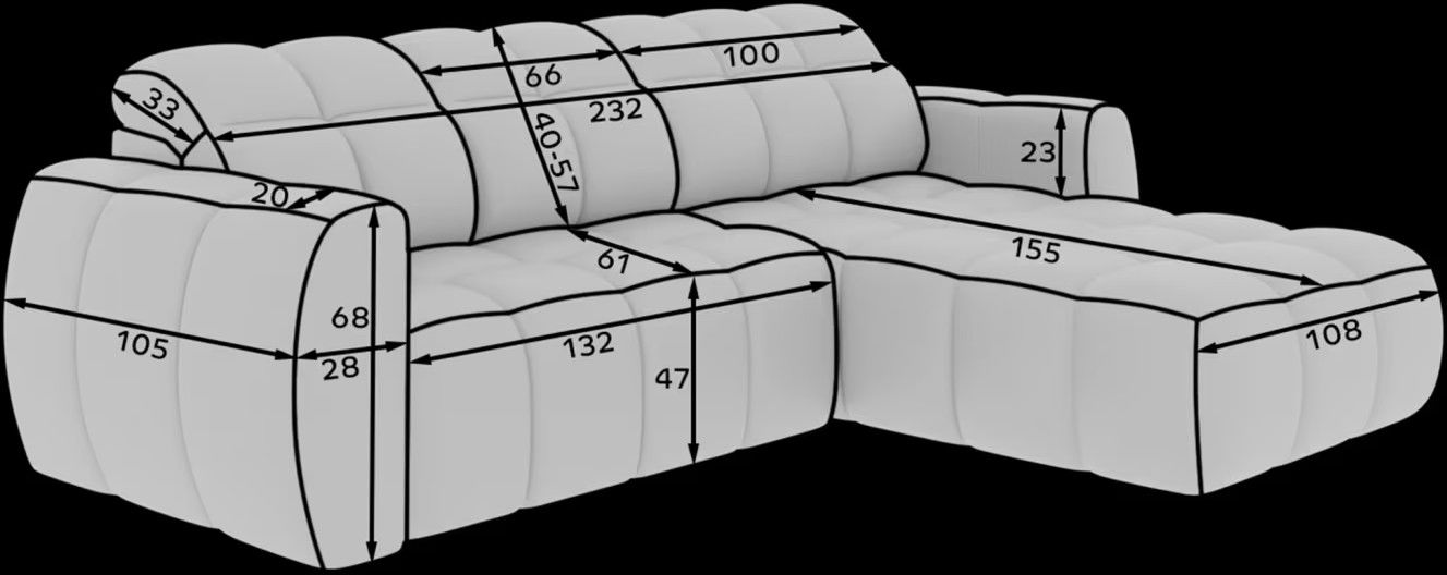 Γωνιακός καναπές Comfora-Γκρι-Δεξιά