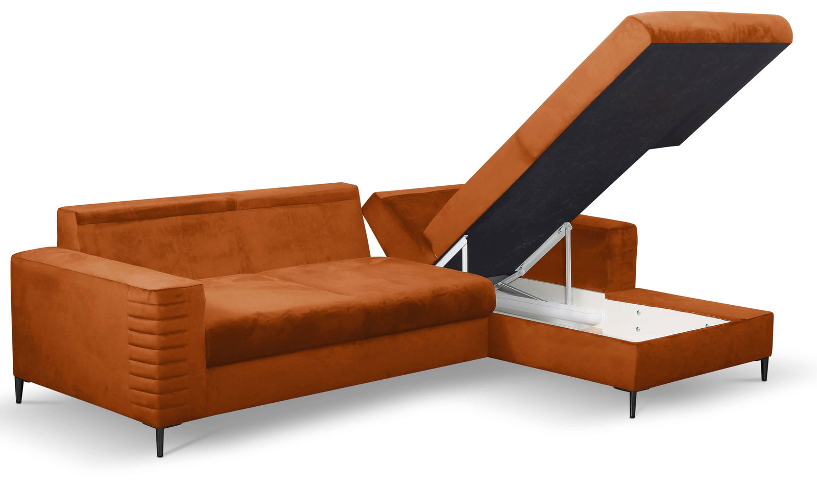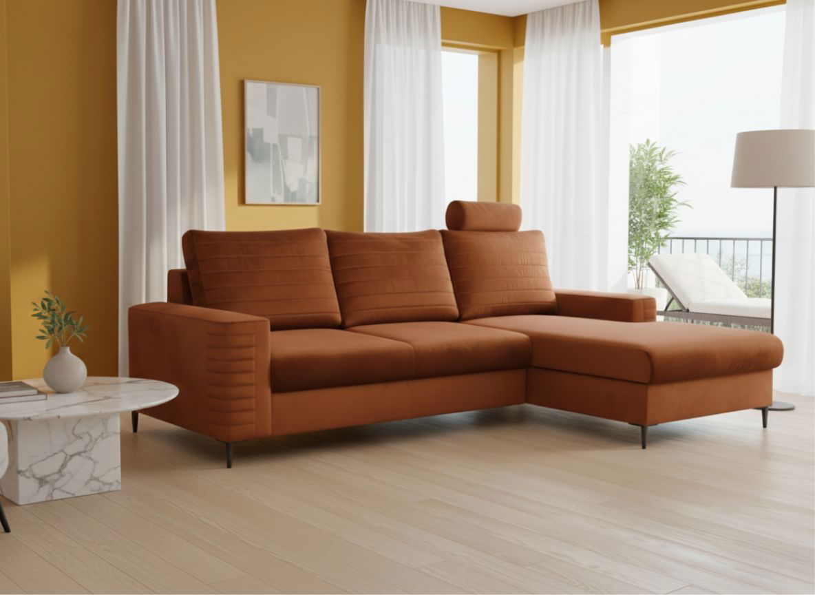 Γωνιακός καναπές Consuegra , κομψού σχεδιασμού που θα κάνει το καθιστικό σας ξεχωριστό και εντυπωσιακό! Συνδυάζει ιδανικά τα γήινα χρώματα και το μοντέρνο στυλ με την πολυλειτουργικότητα καθώς εύκολα μετατρέπετε σε κρεβάτι προσφέροντας την πλήρης άνεση για ξεκούραση και ύπνο. Ο ευρύχωρος αποθηκευτικός χώρος θα κάνει την αποθήκευση κλινοσκεπασμάτων πιο εύκολη από ποτέ.
