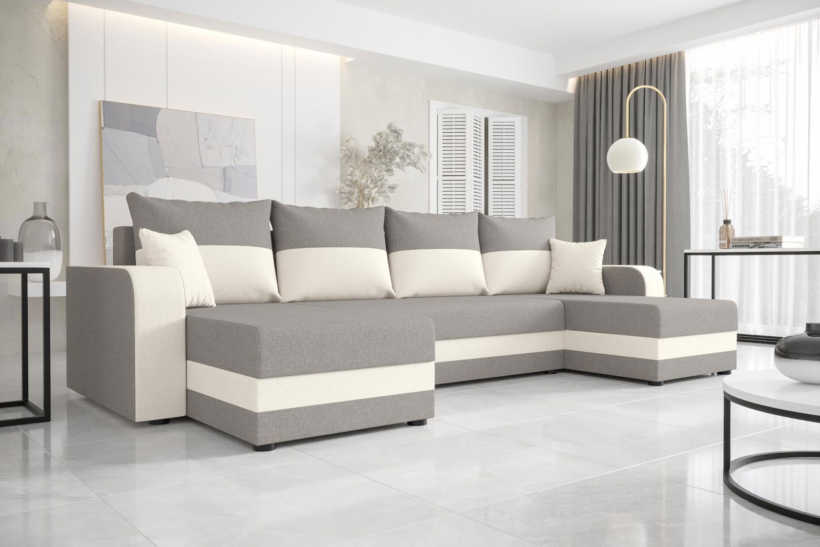 Γωνιακός καναπές Dennis U-Gkri anoixto – leuko