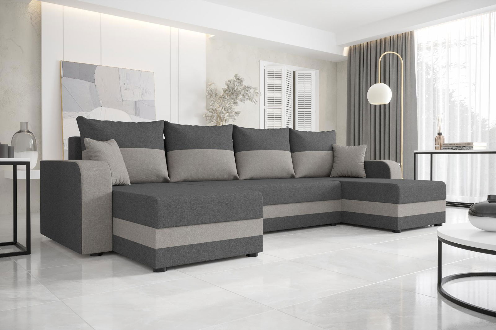 Γωνιακός καναπές Dennis U-Gkri skouro – Gkri anoixto