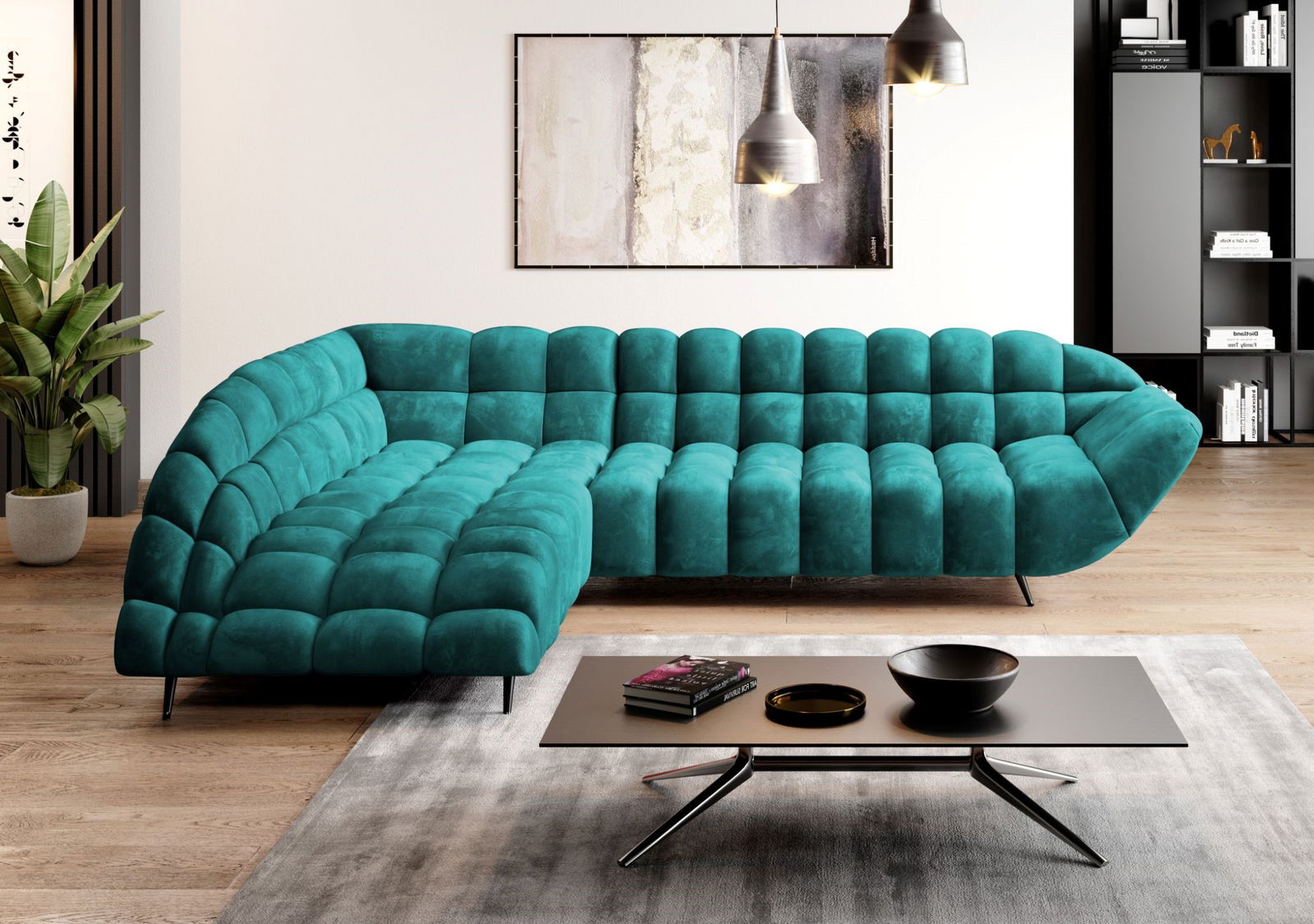Γωνιακός καναπές Dolphin-Petrol-Αριστερή