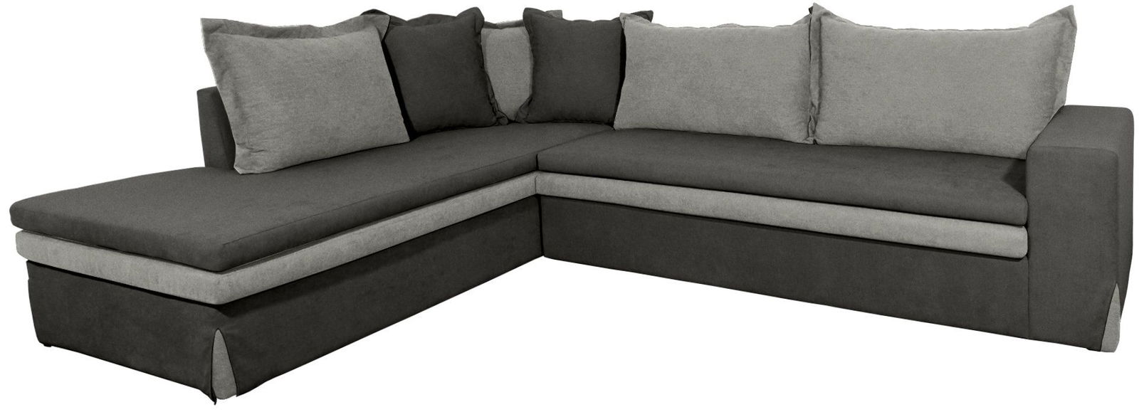 Γωνιακός καναπές Double, σε τετραγωνισμένο σχεδιασμό με ιδιαίτερη και κομψή λεπτομέρεια τη διχρωμία στο κάθισμα και τα μαξιλάρια.
