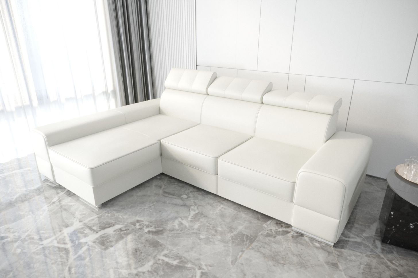 Γωνιακός Καναπές Dren Eco LTHR -Leuko-Αριστερή