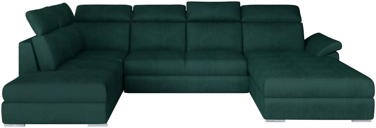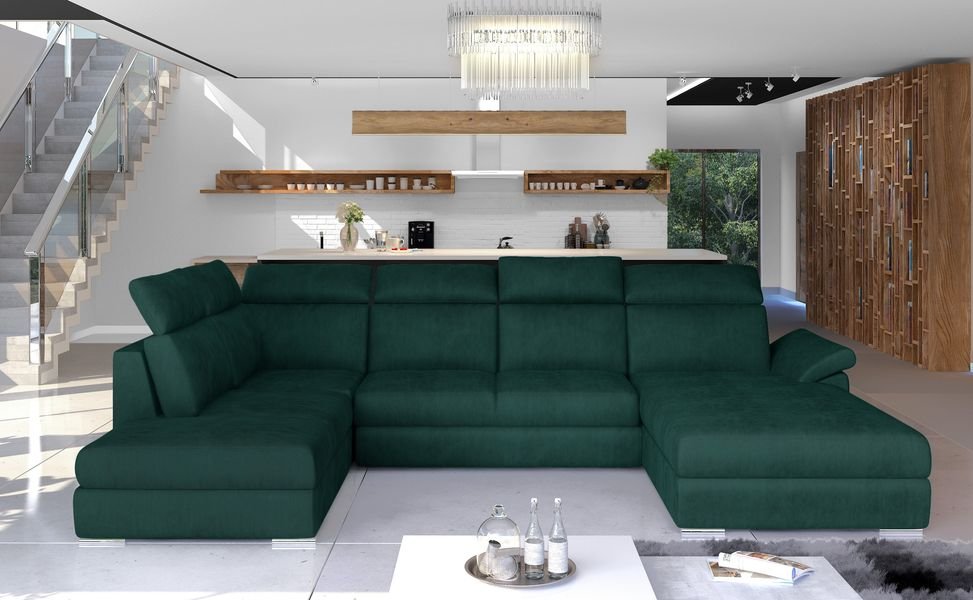 Γωνιακός καναπές Evans, σχήματος “π”, σχεδιασμένος ειδικά για όσους αναζητούν ευρύχωρες, κομψές και λειτουργικές λύσεις για το καθιστικό τους. Χάρη στις κατάλληλα διαμορφωμένες, ψηλές πλάτες με έξι ρυθμιζόμενα προσκέφαλα, ο χρήστης μπορεί ελεύθερα να προσαρμόσει τον καναπέ στις δικές του προτιμήσεις.