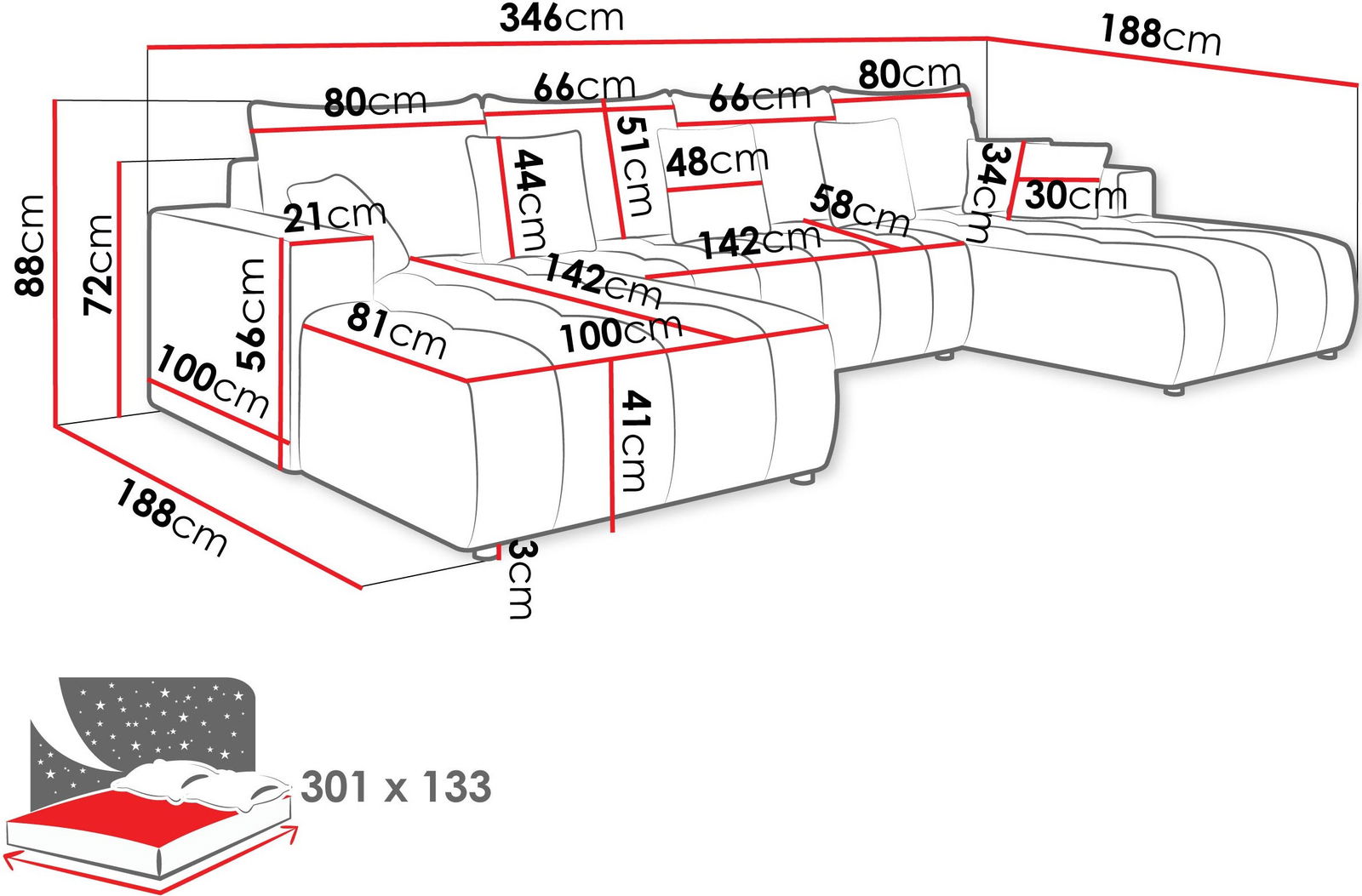 Ο μοναδικός γωνιακός καναπές Fabio σε σχήμα U συνδυάζει το μοντέρνο στυλ με το υψηλότερο επίπεδο άνεσης. Το φαρδύ κάθισμα και οι μαλακές πλάτες του προάγουν τη χαλάρωση μετά από μια κουραστική μέρα, και χάρη στη λειτουργία ύπνου, μπορεί να μετατραπεί σε ένα άνετο κρεβάτι μέσα σε λίγα λεπτά.