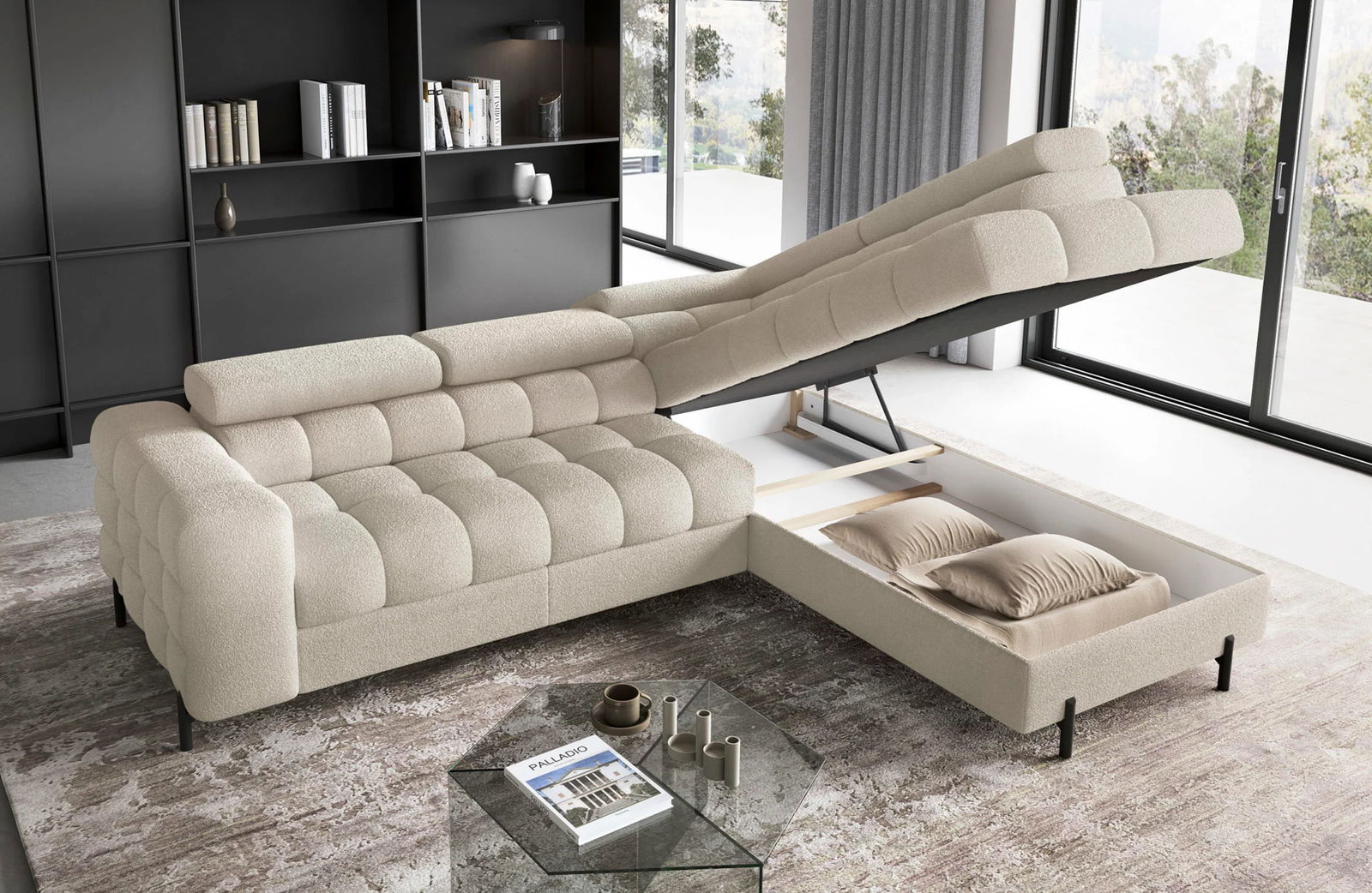 Ο γωνιακός καναπές Ferucce είναι ένα μείγμα μοντέρνας κομψότητας και αξεπέραστης άνεσης, ιδανικό για το σαλόνι σας. Σχεδιάστηκε σχολαστικά για να συνδυάζει αρμονικά τη σύγχρονη κομψότητα με την εξαιρετική άνεση. Δεν είναι μόνο ένα έπιπλο που εντυπωσιάζει με το σχεδιασμό του, αλλά είναι και πρακτικό