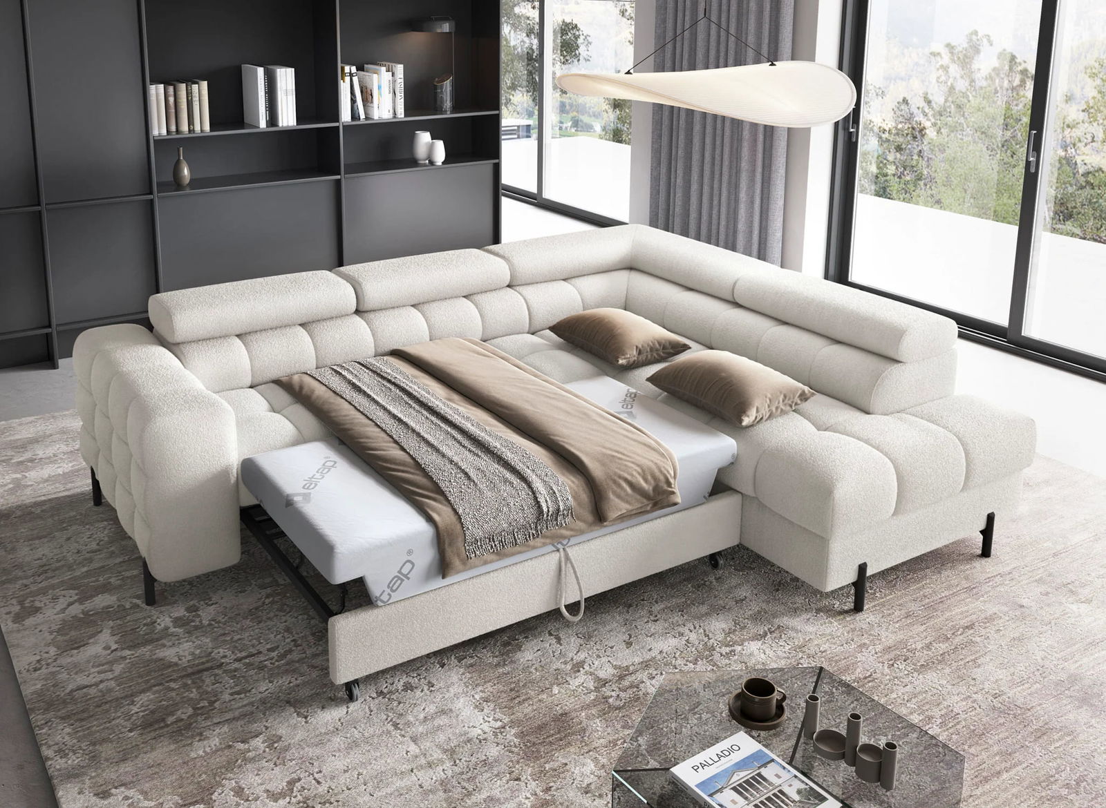 Ο γωνιακός καναπές Ferucce είναι ένα μείγμα μοντέρνας κομψότητας και αξεπέραστης άνεσης, ιδανικό για το σαλόνι σας. Σχεδιάστηκε σχολαστικά για να συνδυάζει αρμονικά τη σύγχρονη κομψότητα με την εξαιρετική άνεση. Δεν είναι μόνο ένα έπιπλο που εντυπωσιάζει με το σχεδιασμό του, αλλά είναι και πρακτικό