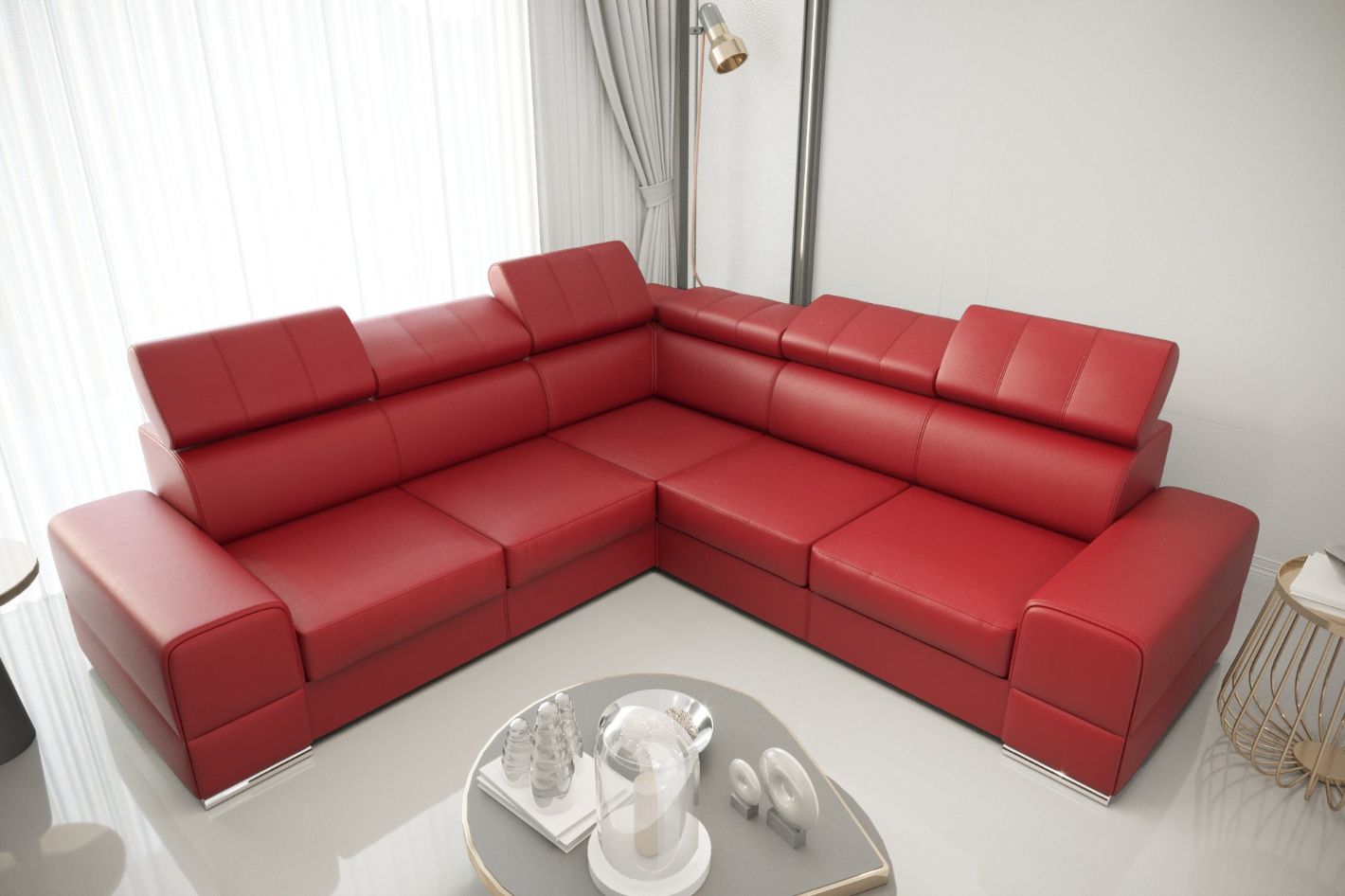 Γωνιακός καναπές Fred LTHR-Kokkino-Δεξιά