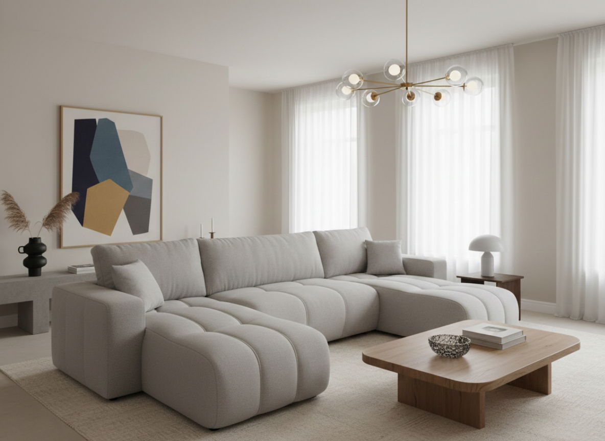 Ο γωνιακός καναπές Furyn U είναι ένας σύγχρονος και κομψός καναπές με μοντέρνο σχέδιο σε σχήμα “U”. Διαθέτει άνετα μαξιλάρια και ευρύχωρο κάθισμα, προσφέροντας άριστη στήριξη και εξαιρετική άνεση.