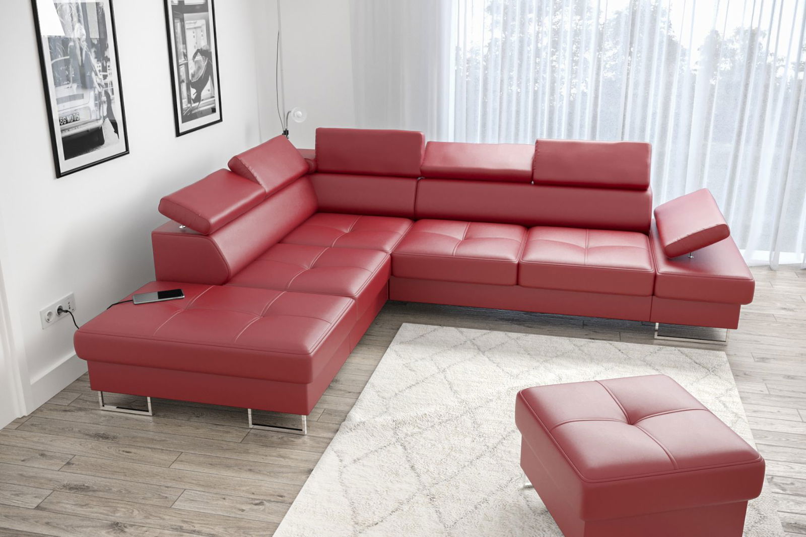Γωνιακός καναπές Gelito LTHR-Kokkino-Αριστερή