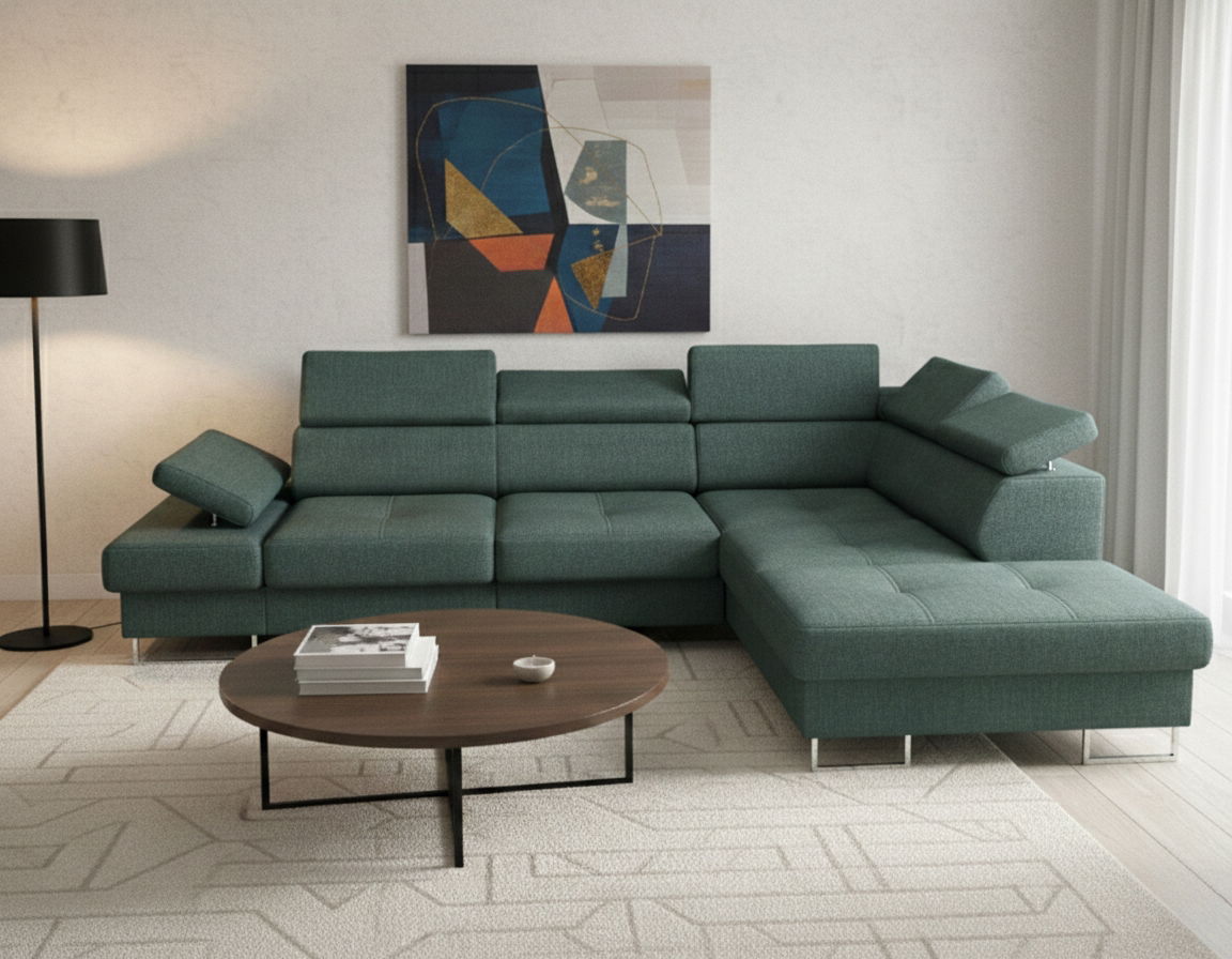 Γωνιακός καναπές Gelito-Prasino Skouro-Δεξιά