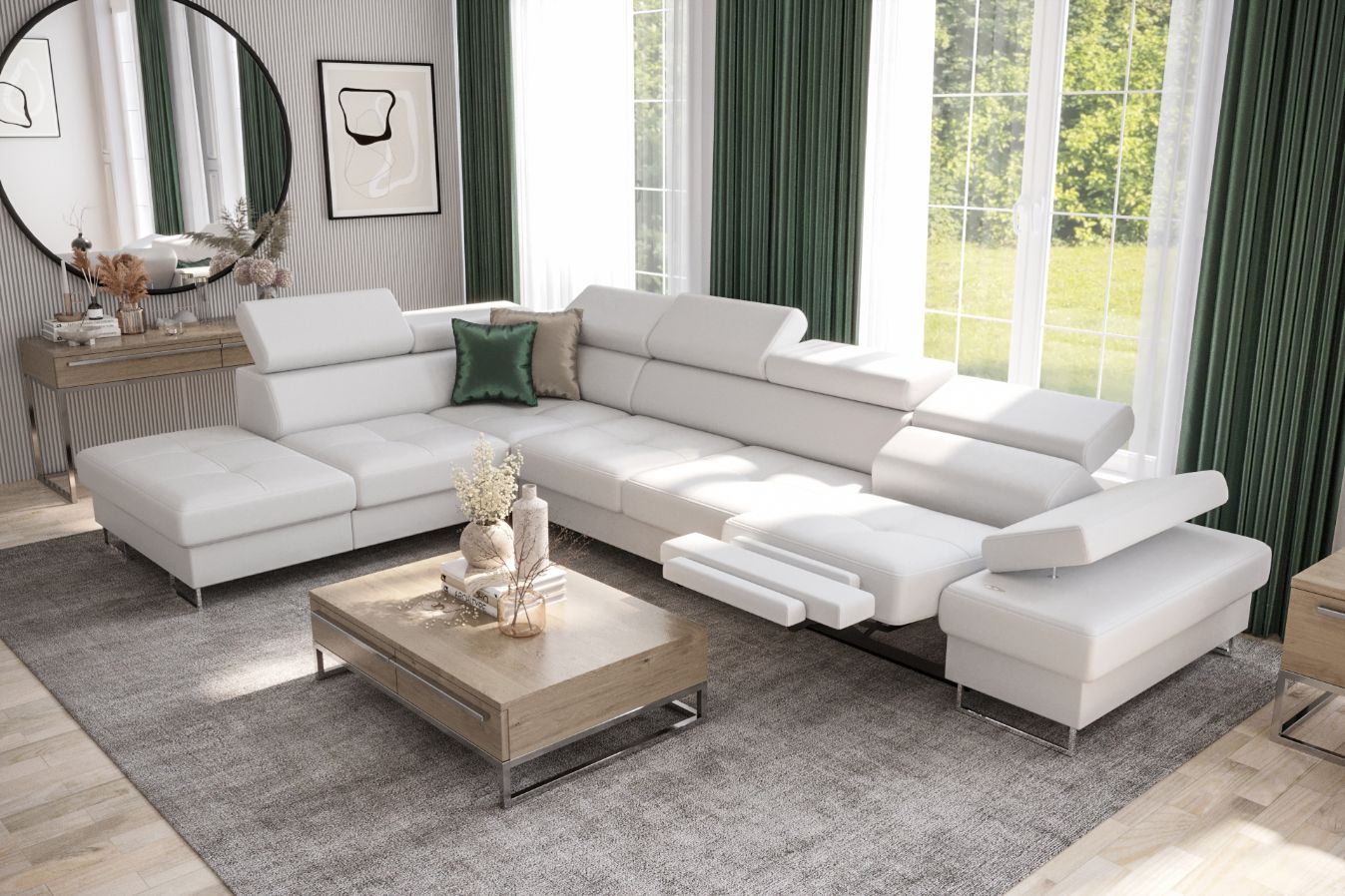 Γωνιακός καναπές Gelito Relax LTHR-Leuko-Αριστερή