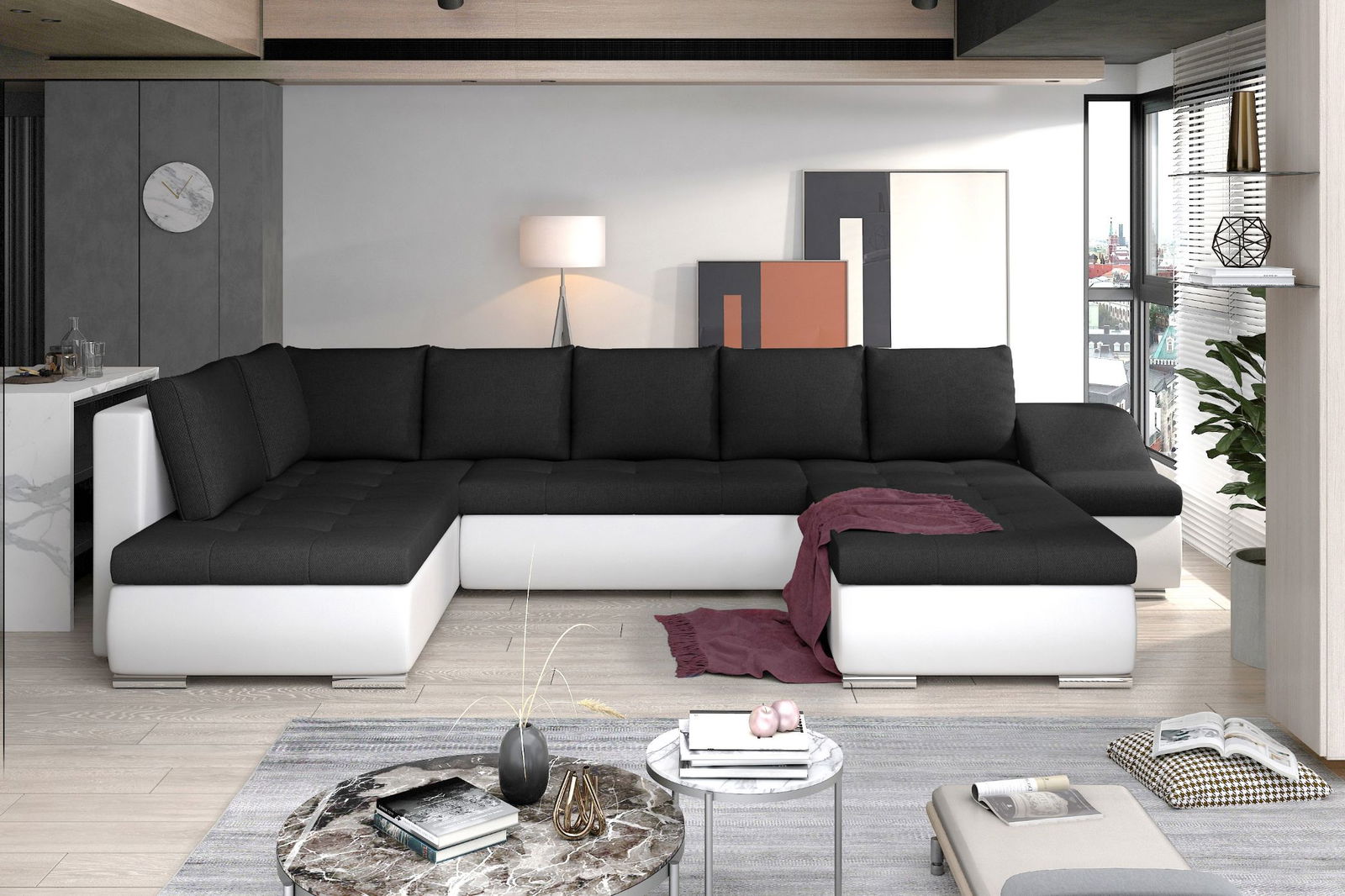 *To λευκό, το μαύρο & το καφέ σκούρο χρώμα του καναπέ είναι επενδυμένα όλο με δερματίνη.