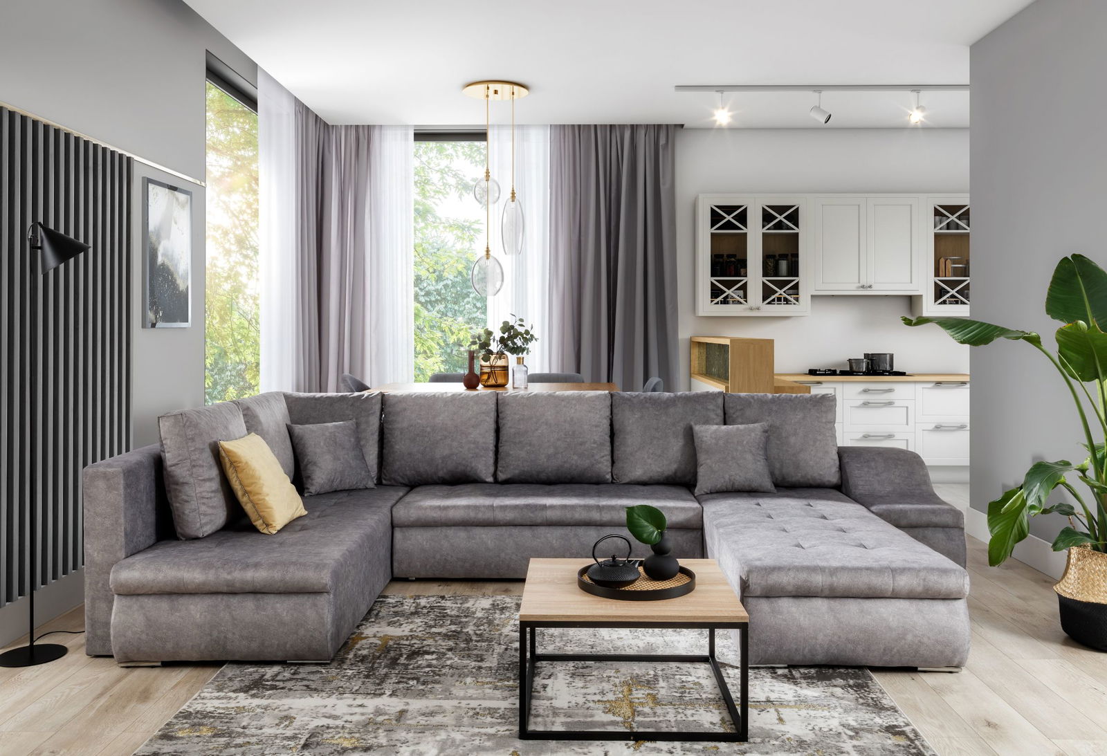 Σαλόνι γωνία Ginny, σε σχήμα “Π”, ιδανικό για μεγάλους χώρους