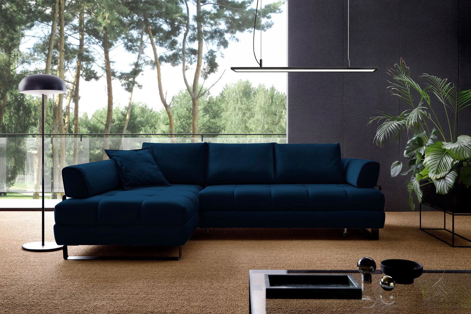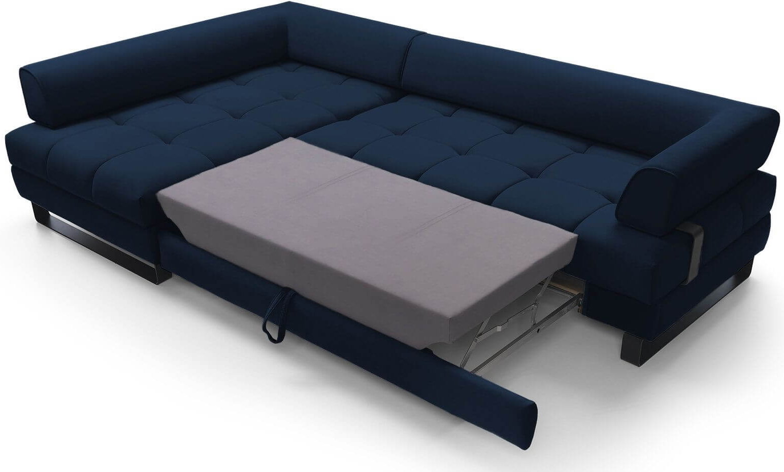 Γωνιακός καναπές Hanna μοντέρνου σχεδιασμού με έμφαση στην υψηλή αισθητική. Οι λιτές σχεδιαστικές γραμμές του το καθιστούν ιδιαίτερα ευέλικτο και άνετο, καθώς μπορεί να χρησιμοποιηθεί και ως κρεβάτι.