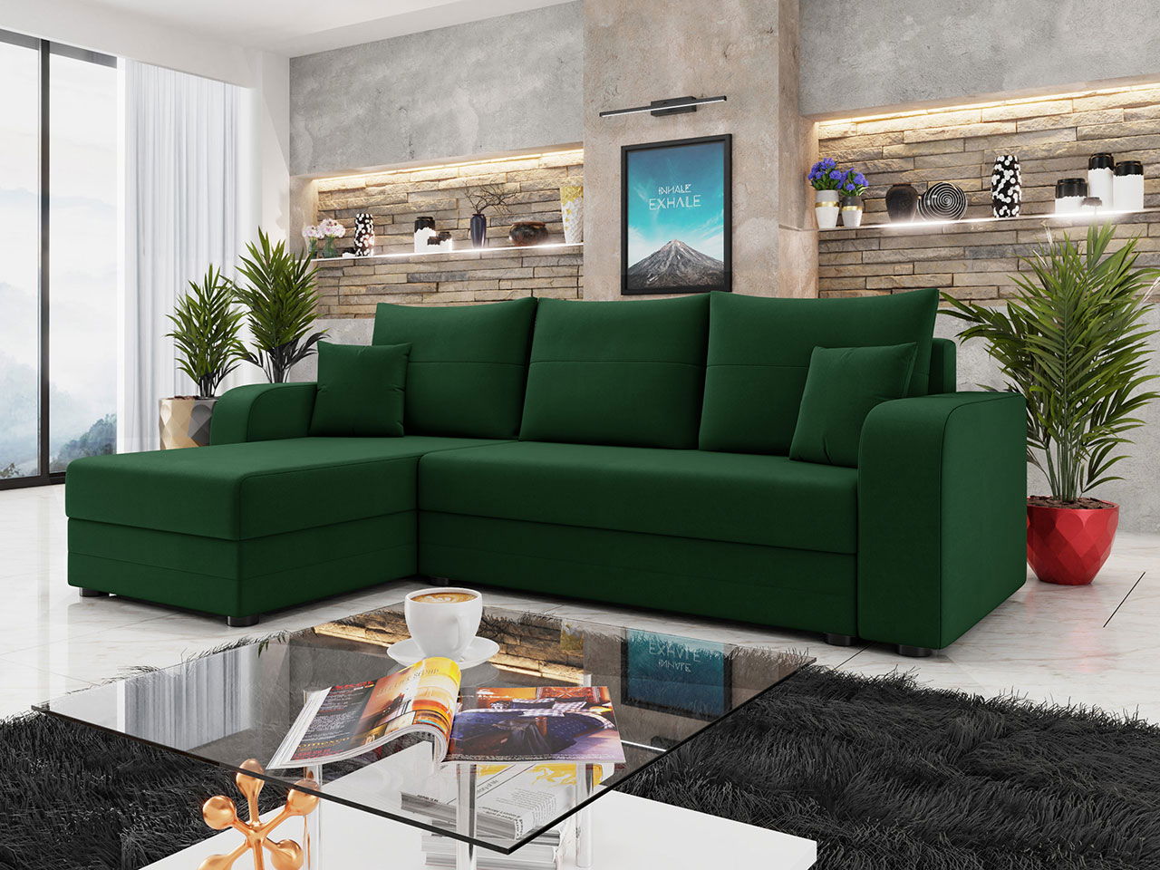 Γωνιακός καναπές Hewlet Bis-Prasino Skouro