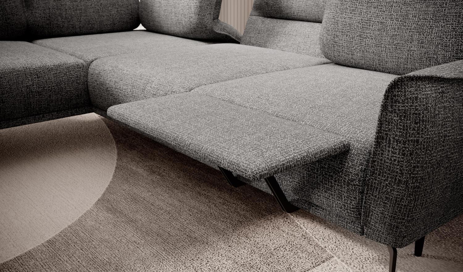 Γωνιακός καναπές Hydra μοντέρνου σχεδιασμού με πρακτικές λειτουργίες που αυξάνουν την χρηστική του αξία. Το ηλεκτρικά ρυθμιζόμενο υποπόδιο συνδυαστικά με τα μετακινούμενα σε ύψος και κλίση μαξιλάρια πλάτης θα σας χαρίσουν στιγμές ξεκούρασης και χαλάρωσης. Χαρη στην μίνιμαλ αισθητική του μπορεί να ταιριαξει εύκολα σε διάφορα είδη διακόσμησης και να συμπληρώσει τον χώρο σας.