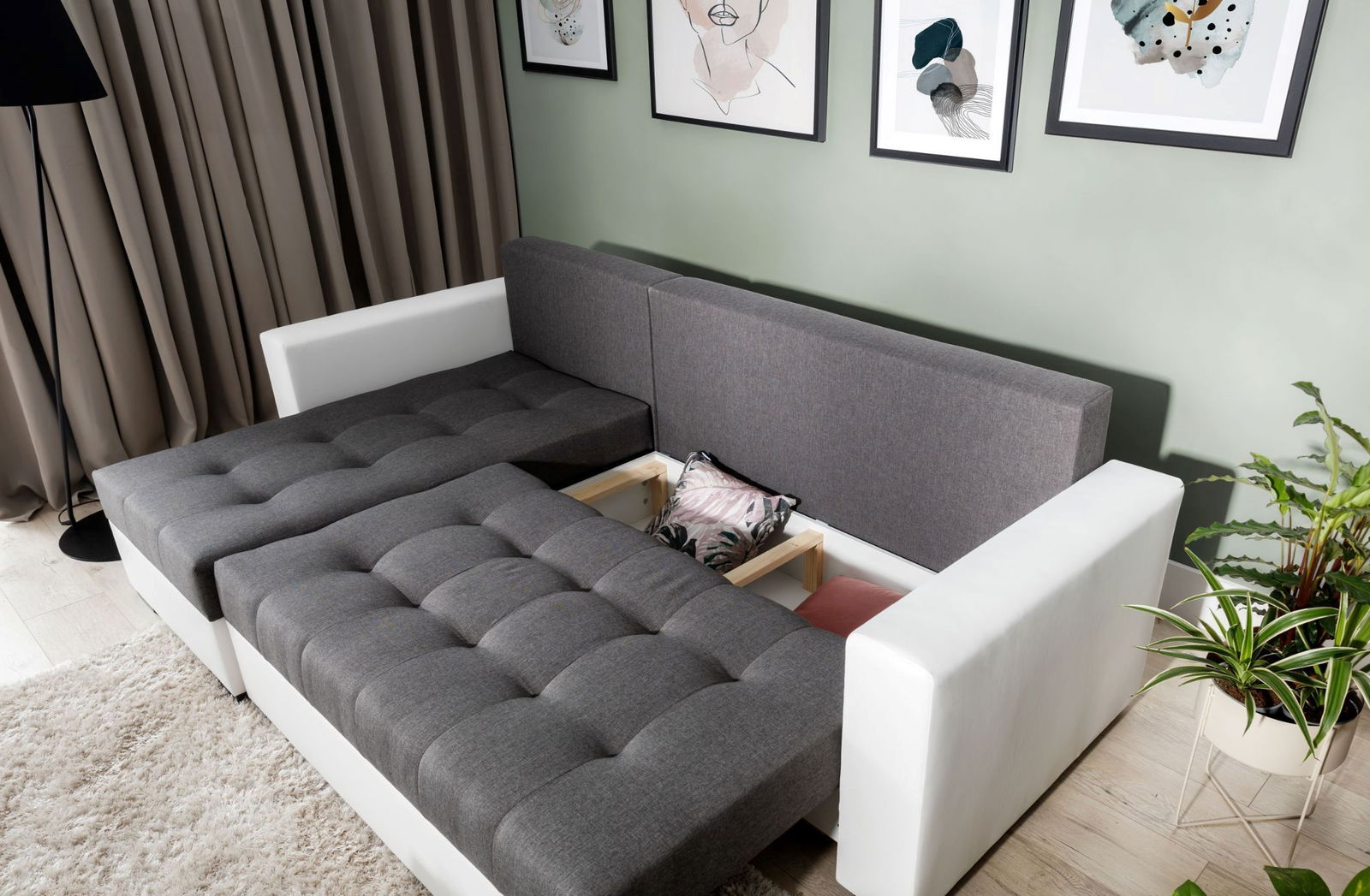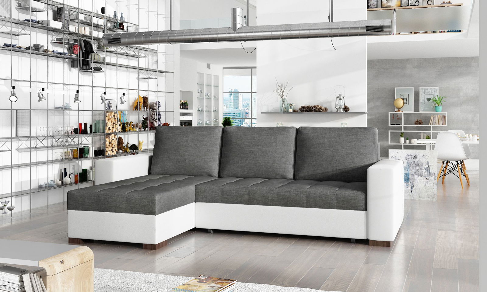 Γωνιακός καναπές Julie-Λευκό – γκρι