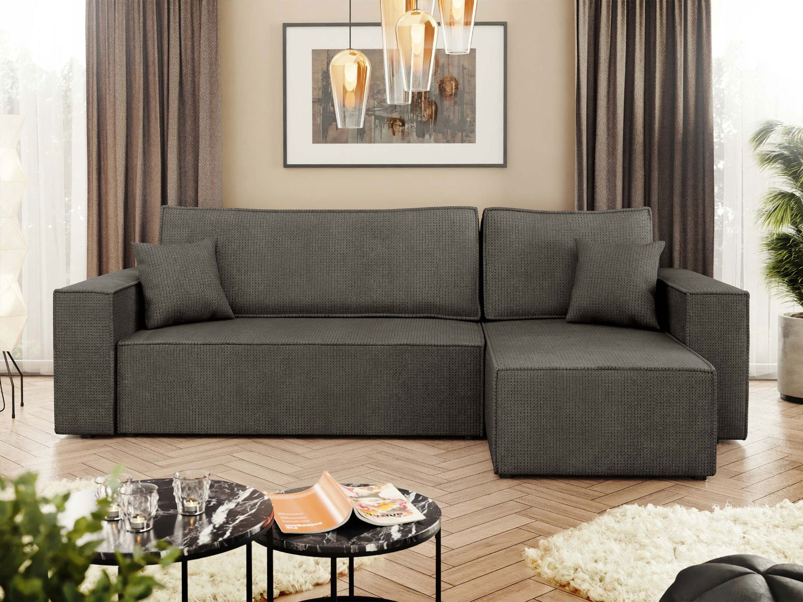 Ο γωνιακός καναπές Karl II είναι ένα μοντέρνο έπιπλο που συνδυάζει λειτουργικότητα και αισθητική, ιδανικό για κάθε σαλόνι. Διαθέτει αναστρέψιμη γωνία, επιτρέποντας την προσαρμογή της είτε στην αριστερή είτε στη δεξιά πλευρά, ανάλογα με τις ανάγκες του χώρου σας. Επιπλέον, μετατρέπεται εύκολα σε κρεβάτι, προσφέροντας επιπλέον χώρο ύπνου για εσάς ή τους καλεσμένους σας.