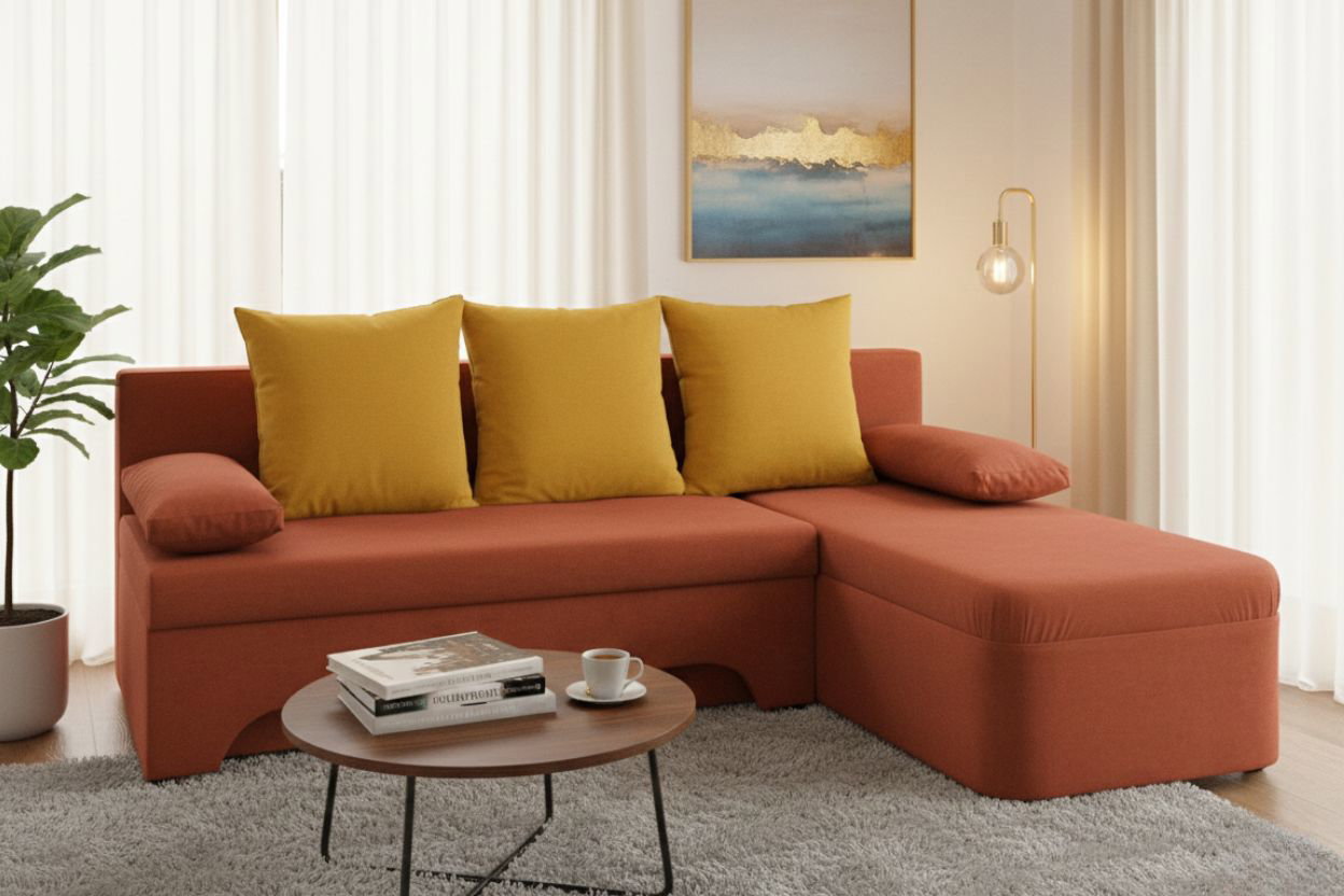 Γωνιακός καναπές Lamor-Πορτοκαλί – Κίτρινο