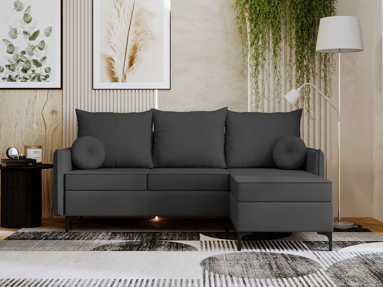 Γωνιακός καναπές Leon L-Gkri Skouro-Δεξιά