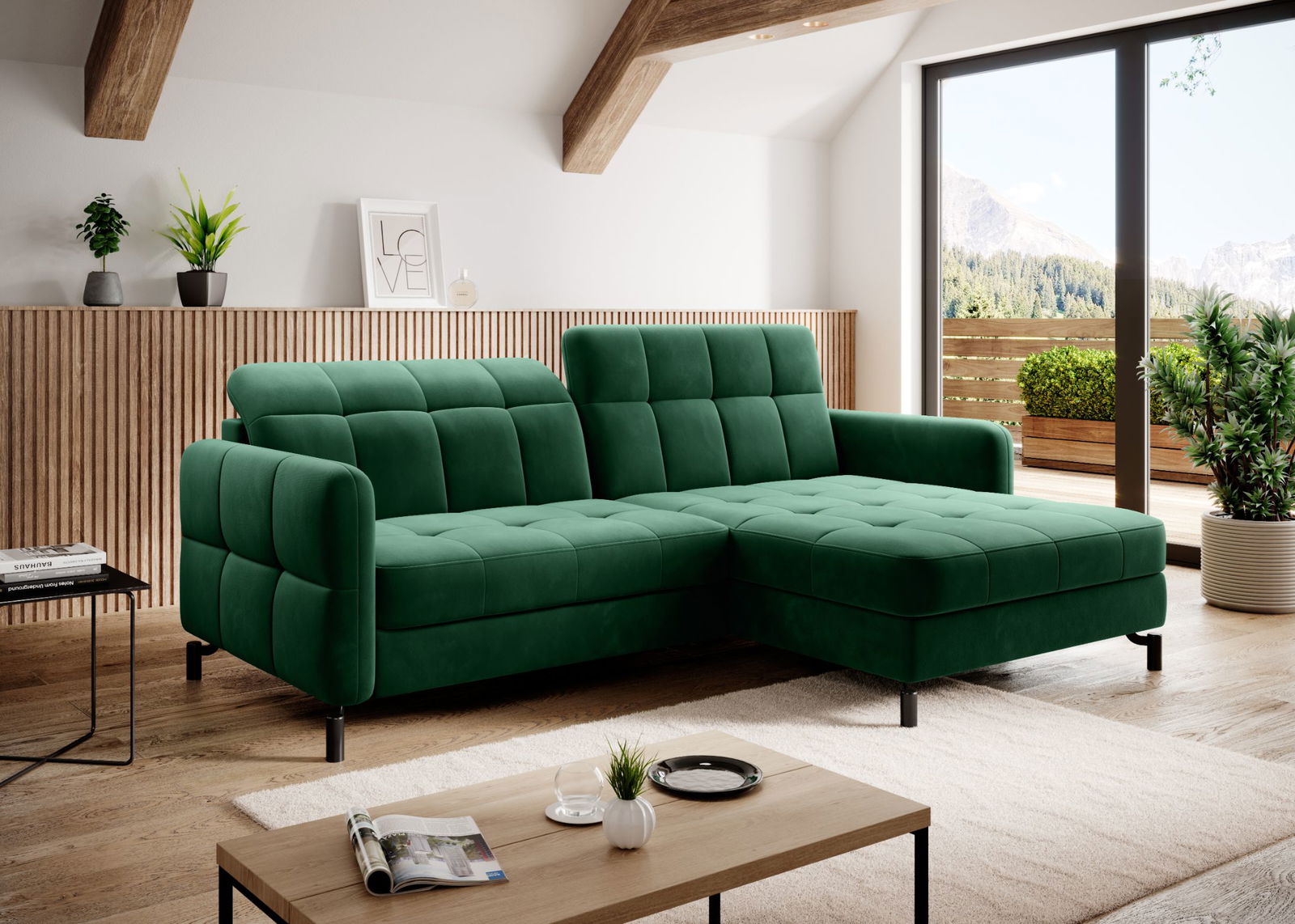 Γωνιακός καναπές Lorette-Prasino Skouro-Δεξιά