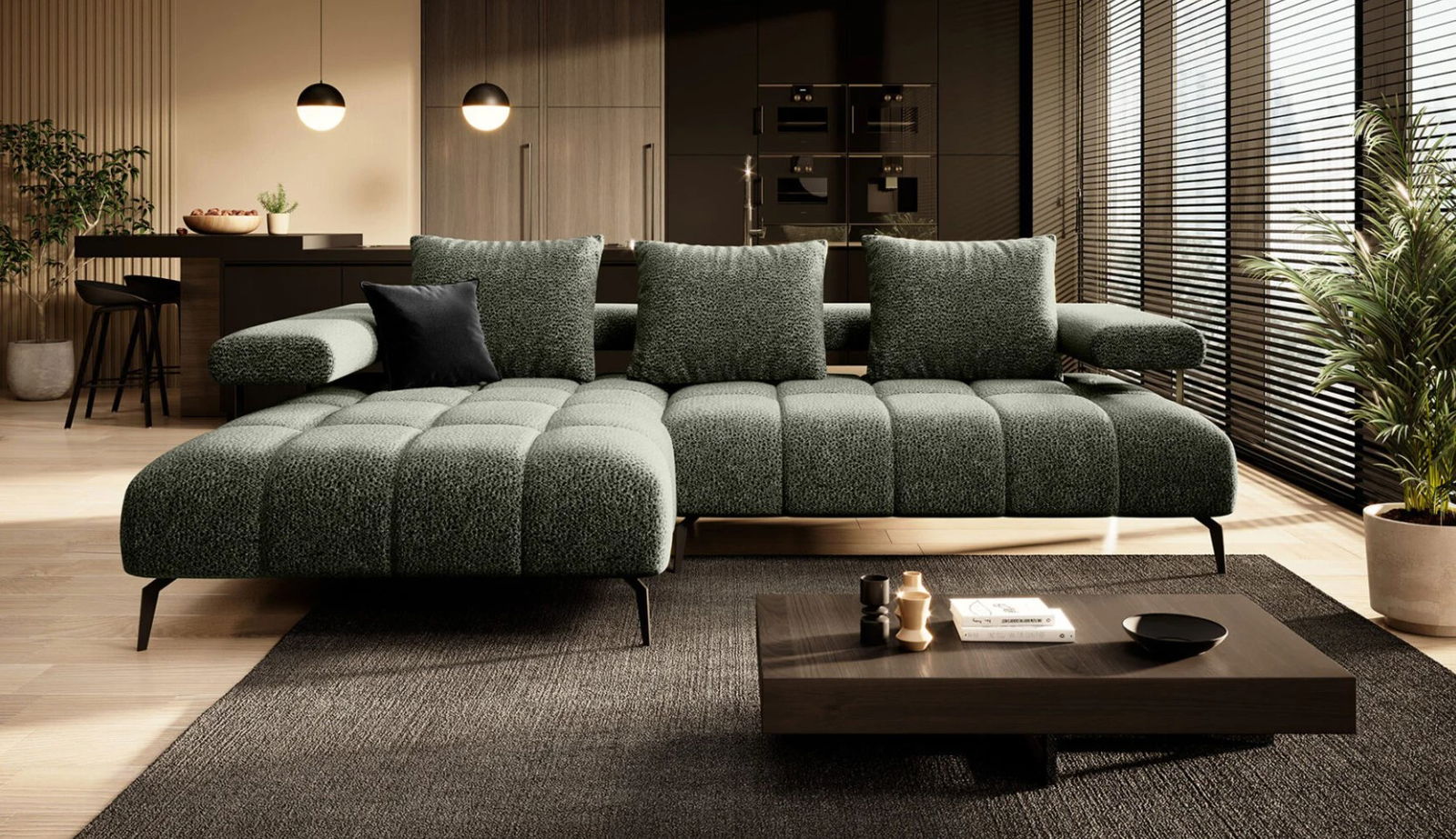 Γωνιακός καναπές Magnito-Prasino-Αριστερή