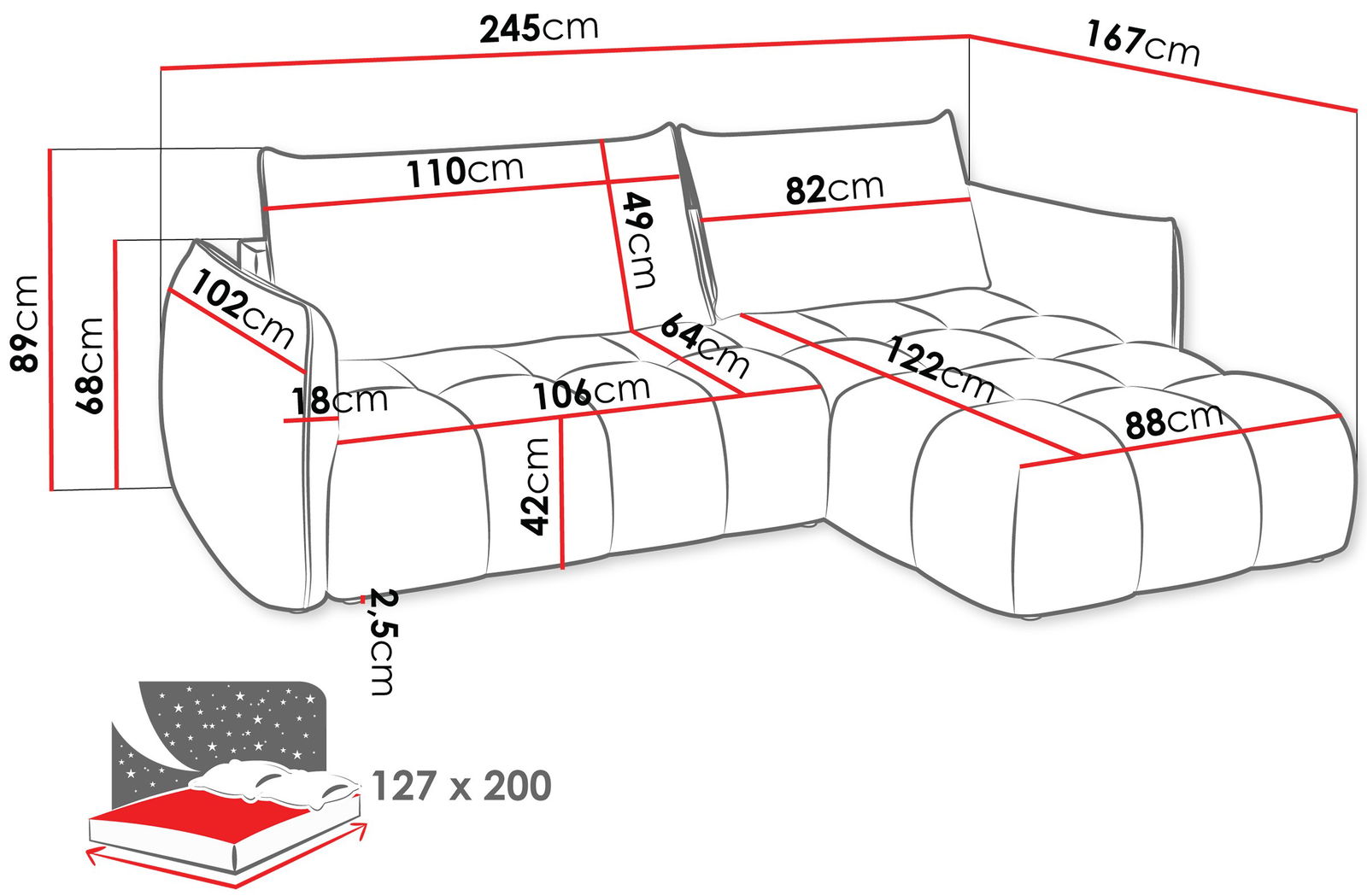 Ο Γωνιακός Καναπές Marsala με λειτουργία ύπνου και αποθηκευτικό χώρο είναι σχεδιασμένος για να προσφέρει άνεση και πρακτικότητα στο καθιστικό σου. Βασίζεται σε μοντέρνο και λειτουργικό σχεδιασμό που επιτρέπει εύκολη μετατροπή σε κρεβάτι, καθιστώντας τον ιδανικό για καθημερινή χρήση ή φιλοξενία επισκεπτών. Έχει επίσης ενσωματωμένο χώρο αποθήκευσης για κουβέρτες, μαξιλάρια και άλλα αντικείμενα, βοηθώντας να διατηρείς τον χώρο σου τακτοποιημένο.