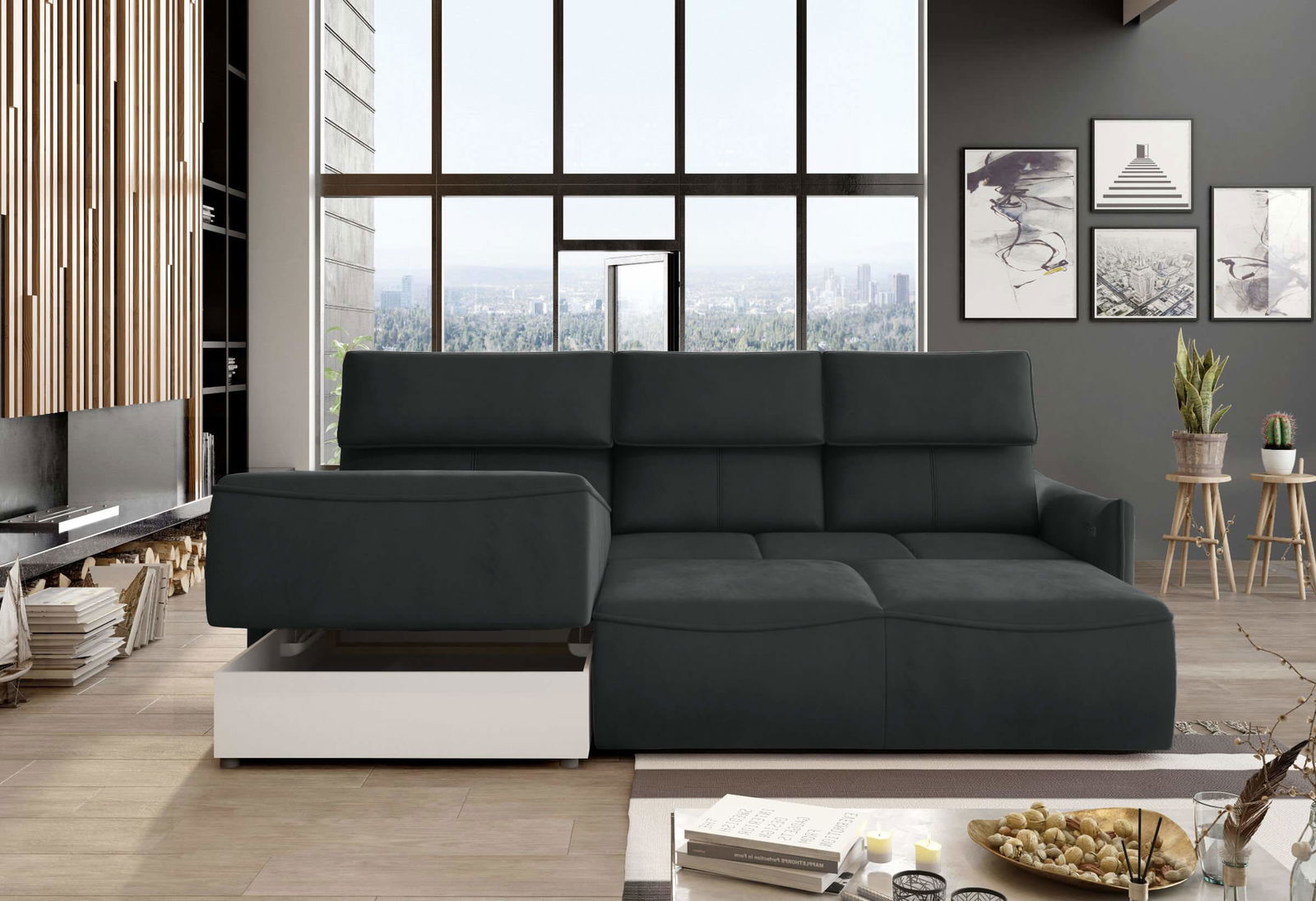 Γωνιακός καναπές Merlyn μοντέρνου και πρακτικού σχεδιασμού με λειτουργίες που θα σας λύσουν τα χέρια. Ιδανικός για μικρούς χώρους σαλονιού. Εξαιρετικά άνετο και αναπαυτικό κάθισμα.