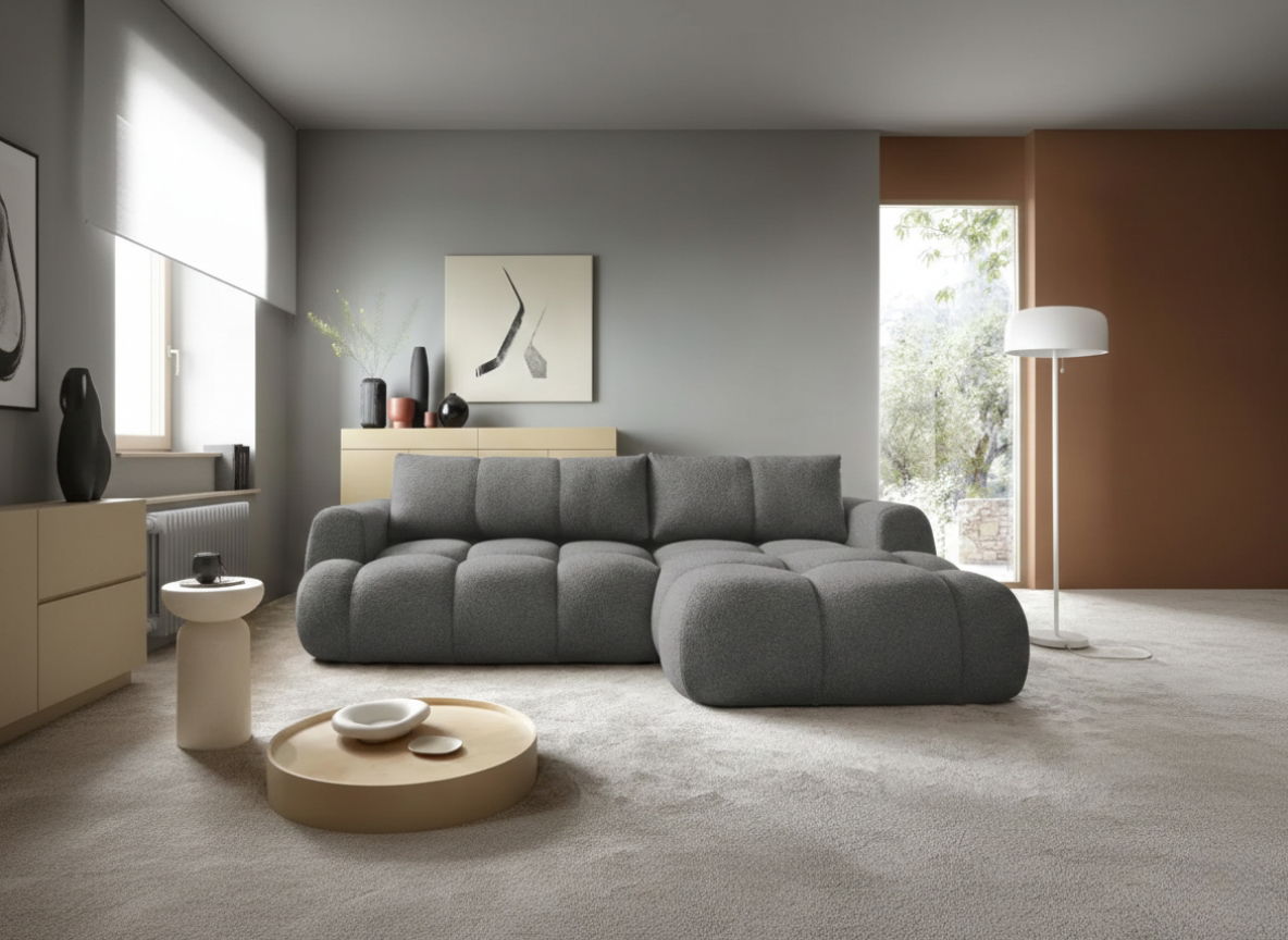 Αφεθείτε στην απόλυτη άνεση και το στυλ με τον ελκυστικό γωνιακό καναπέ Mitto. Η μαλακή, υφασμάτινη επένδυση και τα βελούδινα μαξιλάρια δημιουργούν μια ζεστή και φιλόξενη ατμόσφαιρα. Ο αρθρωτός σχεδιασμός επιτρέπει ευέλικτες ρυθμίσεις καθισμάτων, καθιστώντας τον ιδανικό για τη φιλοξενία καλεσμένων ή τη χαλάρωση με την οικογένεια.