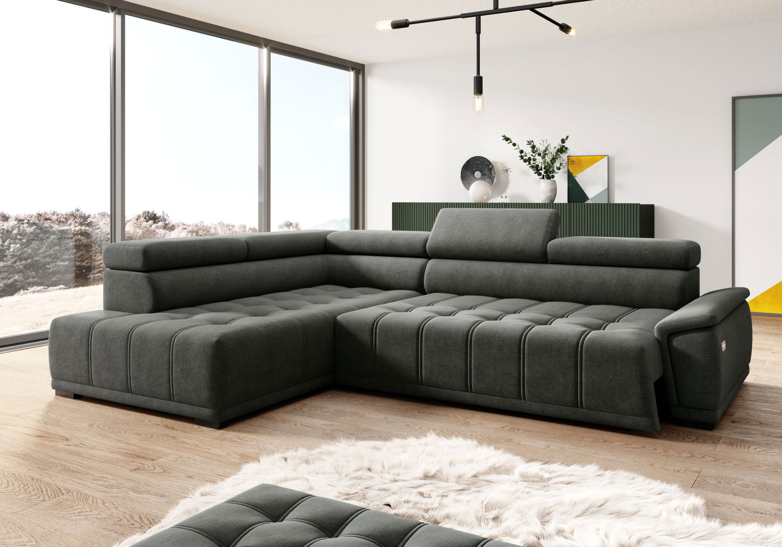 Γωνιακός καναπές Mogrio μοντέρνου και μίνιμαλ σχεδιασμού. Αποτελεί ιδανική λύση για τον χώρο σας καθώς μπορεί να ταιριάξει εύκολα με κάθε διακόσμηση και να χαρίσει μια αίσθηση ανανέωσης στον χώρο σας.