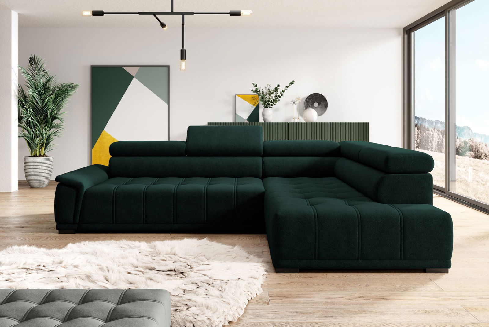 Γωνιακός καναπές Mogrio μοντέρνου και μίνιμαλ σχεδιασμού. Αποτελεί ιδανική λύση για τον χώρο σας καθώς μπορεί να ταιριάξει εύκολα με κάθε διακόσμηση και να χαρίσει μια αίσθηση ανανέωσης στον χώρο σας.