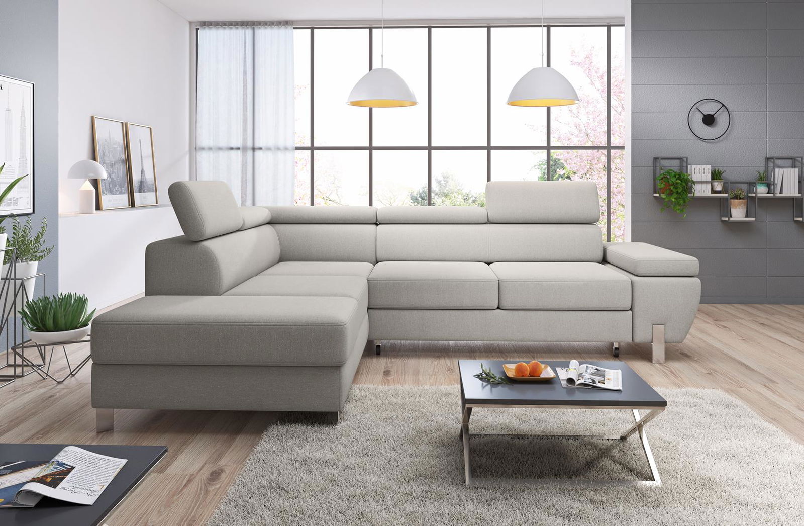 Μοντέρνο γωνιακό σαλόνι Morel, εξαιρετικά άνετου κι αναπαυτικού καθίσματος. Μια επιβλητική και πρακτική επιλογή για ένα άκρως εντυπωσιακό σαλόνι.