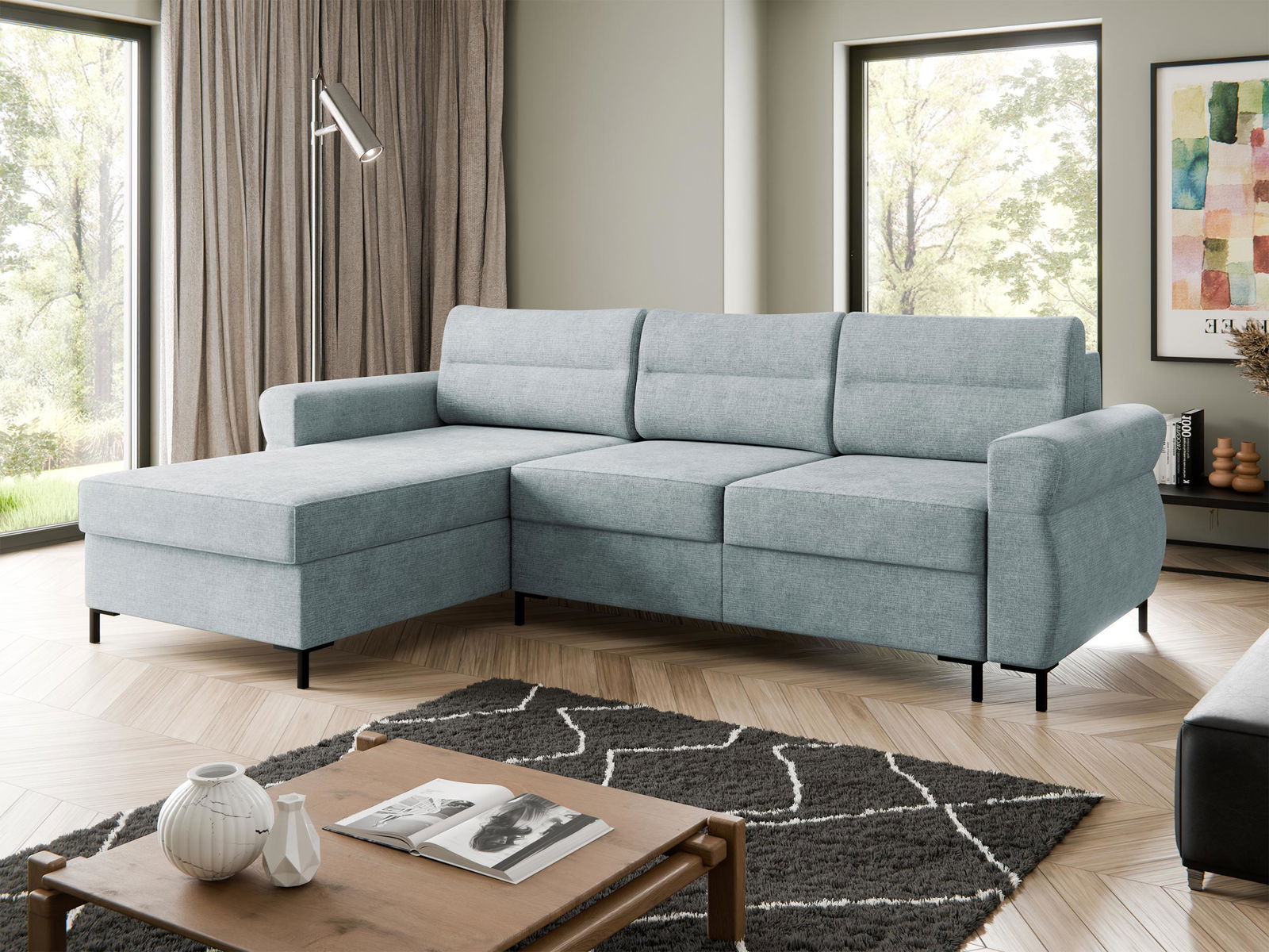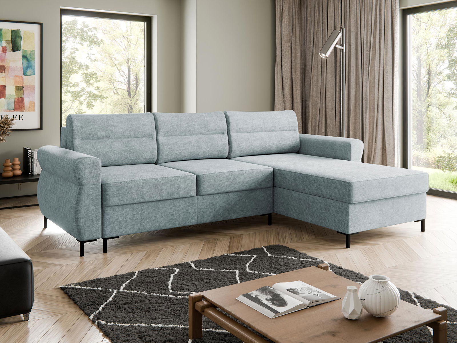 Ο γωνιακός καναπές Mormi διαθέτει μια απλή αλλά σύγχρονη σχεδίαση που είναι ιδανική για κάθε σαλόνι. Τα ουδέτερα χρώματα του υφάσματος του, μαζί με τα στρογγυλεμένα μπράτσα και τα τετράγωνα μαξιλάρια καθισμάτων, δημιουργούν μια φιλόξενη και άνετη ατμόσφαιρα. Η κατασκευή του καναπέ είναι ανθεκτική και στιβαρή, με μαξιλάρια που προσφέρουν υποστήριξη και άνεση. Τα χαμηλά μαύρα πόδια του προσδίδουν μια διακριτική κομψότητα.