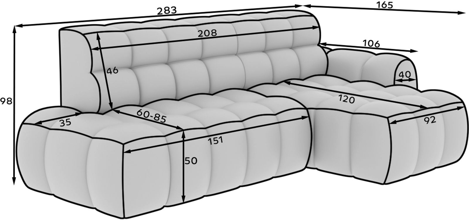 Γωνιακός καναπές Nerida-Gkri Skouro-Δεξιά