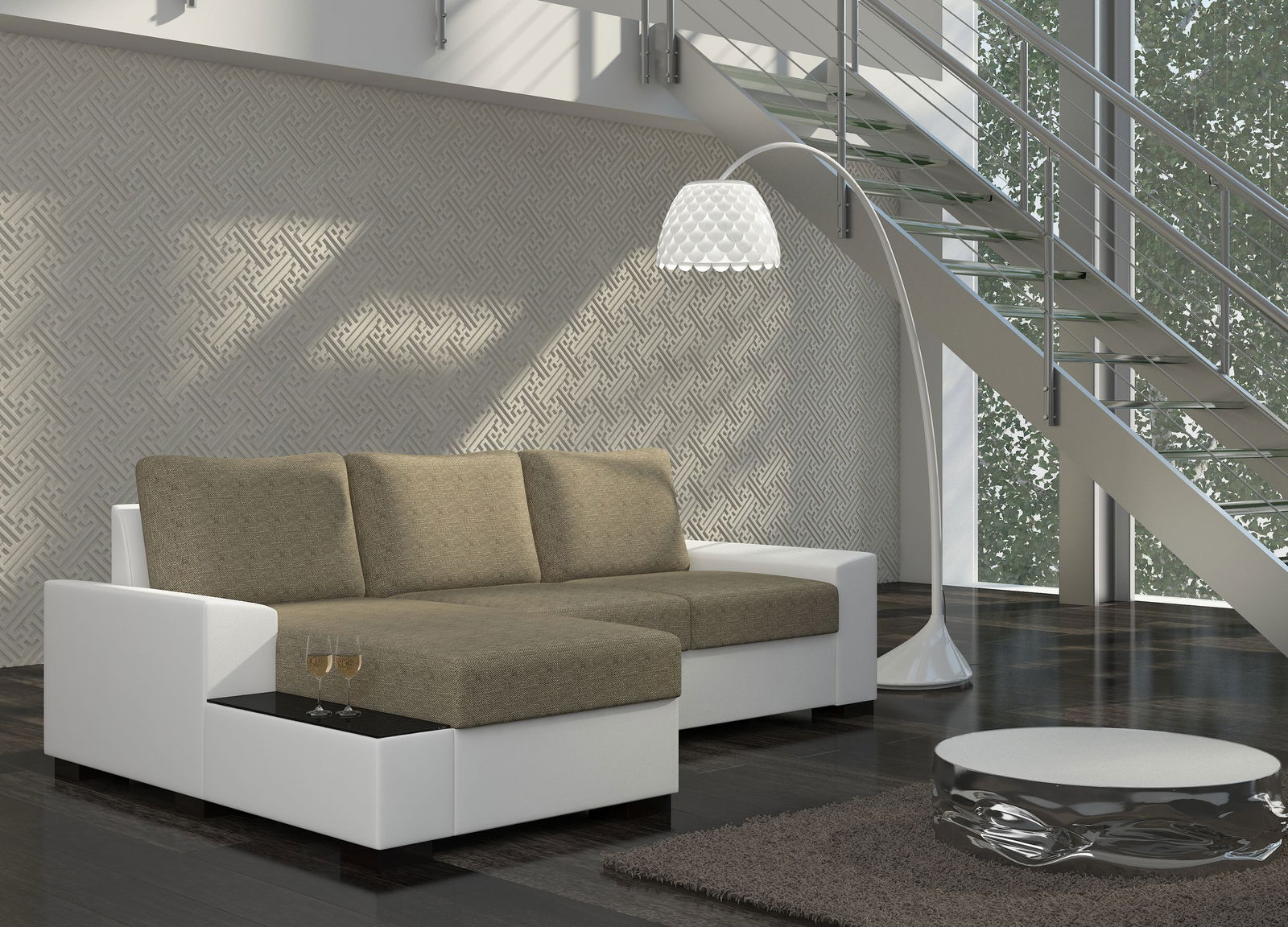 Γωνιακός καναπές Nero-Αριστερή-Λευκό – Μπεζ
