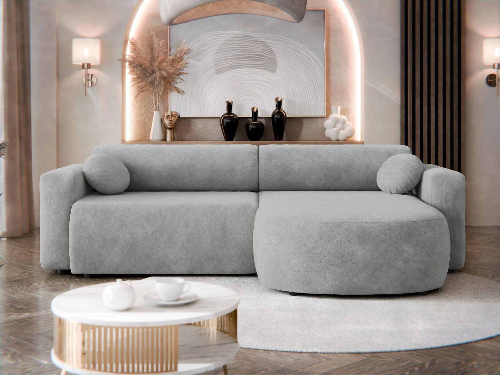 Ο γωνιακός καναπές Nicelo συνδυάζει άνεση και μοντέρνα σχεδίαση, προσφέροντας ιδανική λύση για τον εξοπλισμό του σαλονιού σας. Με υψηλής ποιότητας υλικά και εργονομική κατασκευή, εξασφαλίζει μέγιστη άνεση για χαλάρωση και κοινωνικές στιγμές. Διαθέτει κομψές γραμμές και ευέλικτο σχεδιασμό που ταιριάζει σε κάθε χώρο, ενώ η γωνιακή του διάταξη προσφέρει επιπλέον χώρο και ευχρηστία.